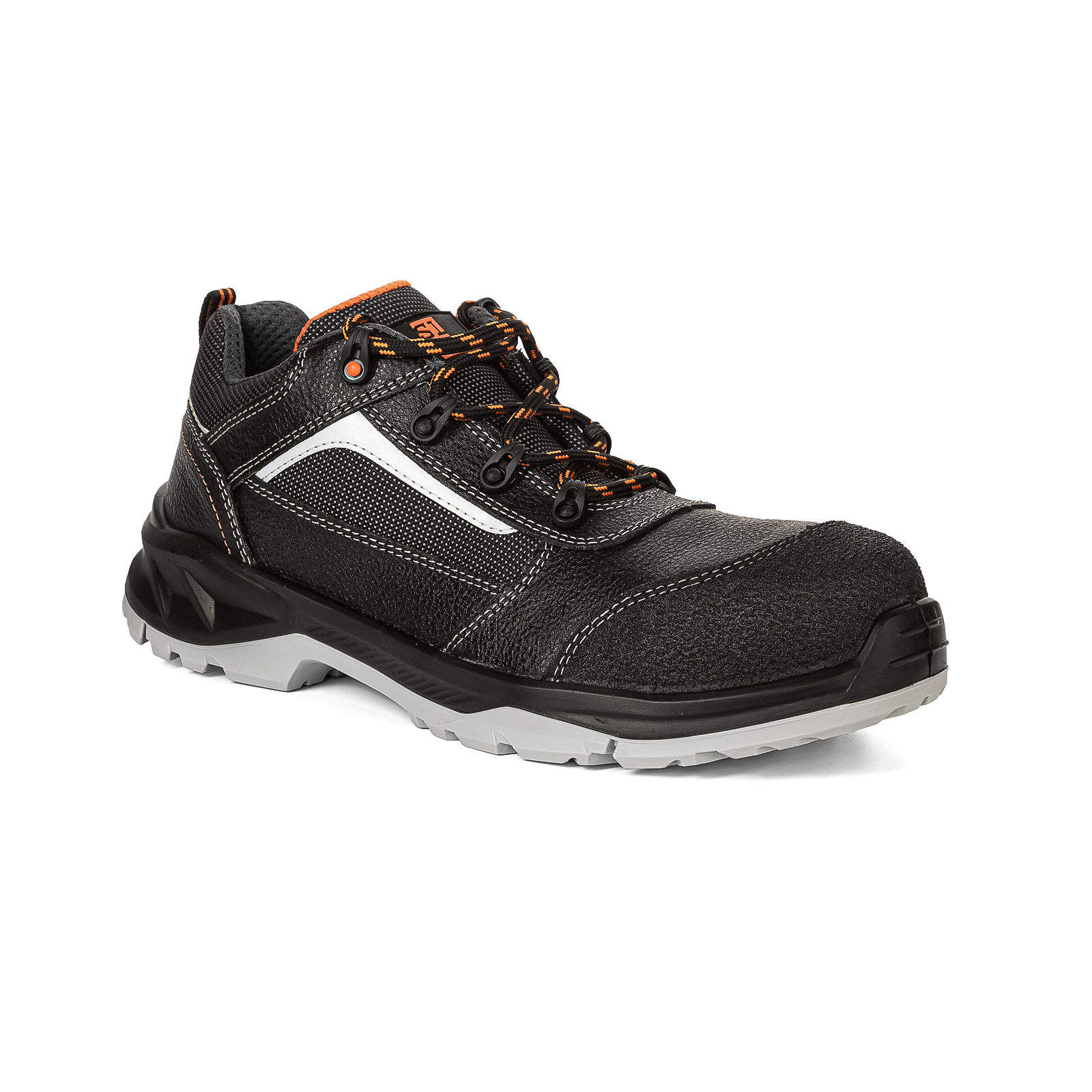 Верх обуви выполнен в комбинации из натуральной кожи и текстильного материала. Подошва выполнена из полиуретана двойной плотности: ходовой слой из износоустойчивого термопластичного полиуретана, внутренний слой из облегченного полиуретана для лучшей амортизации. Подклад выполнен из дышащей 3D – сетки Защищают от общих производственных загрязнений и ударов в носочной части 200Дж (композитный подносок).