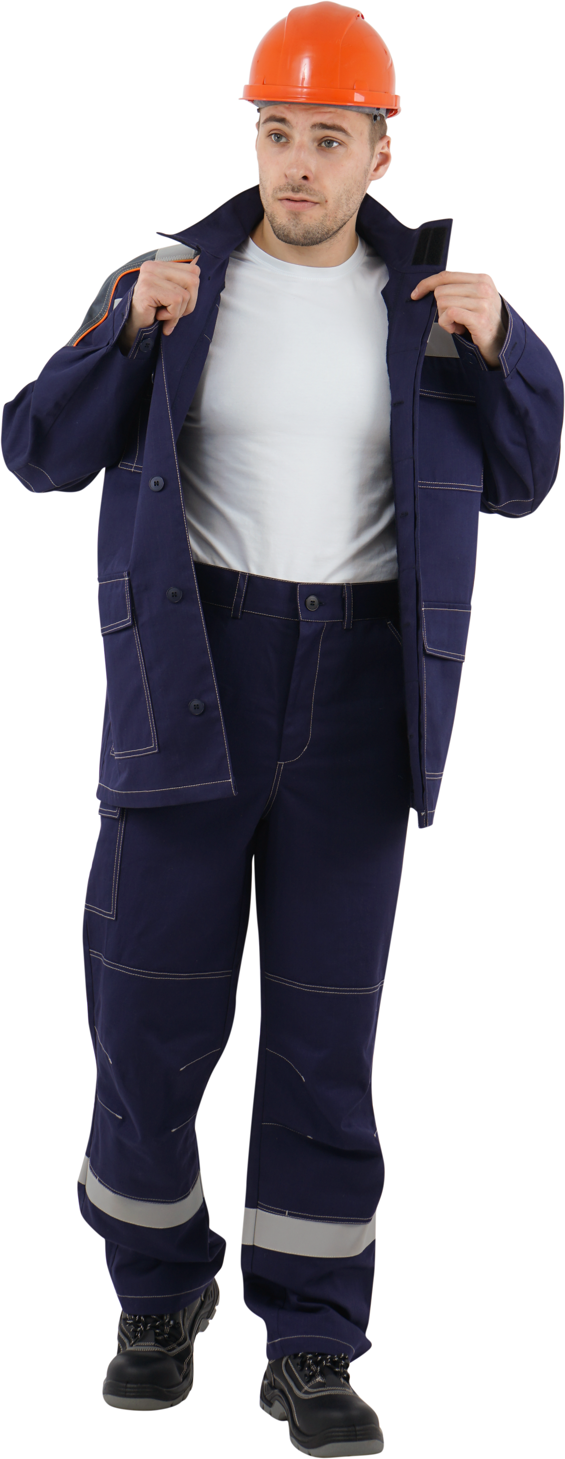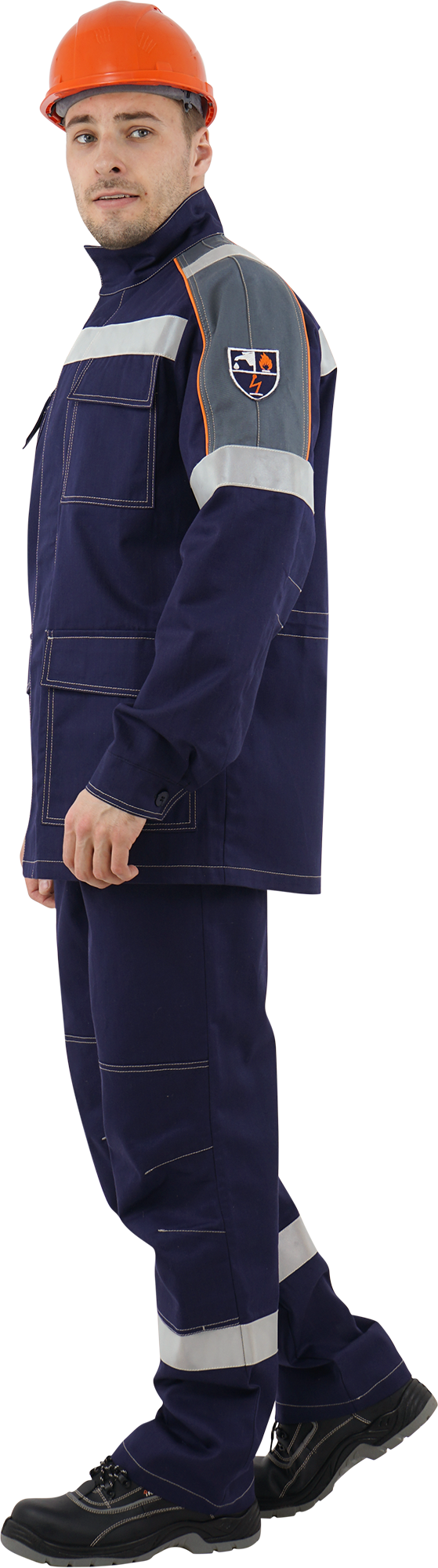В костюме используется огнестойкая световозвращающая полоса шириной 50 мм. Огнестойкие нитки Nomex.