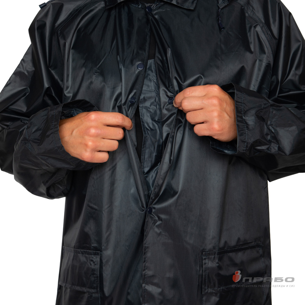 Плащ: прямого силуэта, с центральной застёжкой на кнопки, с внутренней ветрозащитной планкой. На спине присутствуют вентиляционные отверстия. Рукава имеют внутренние манжеты, что обеспечивает защиту при дожде и ветре и от продувания. Все швы проклеены специальной лентой и защищают от влаги и конденсата.