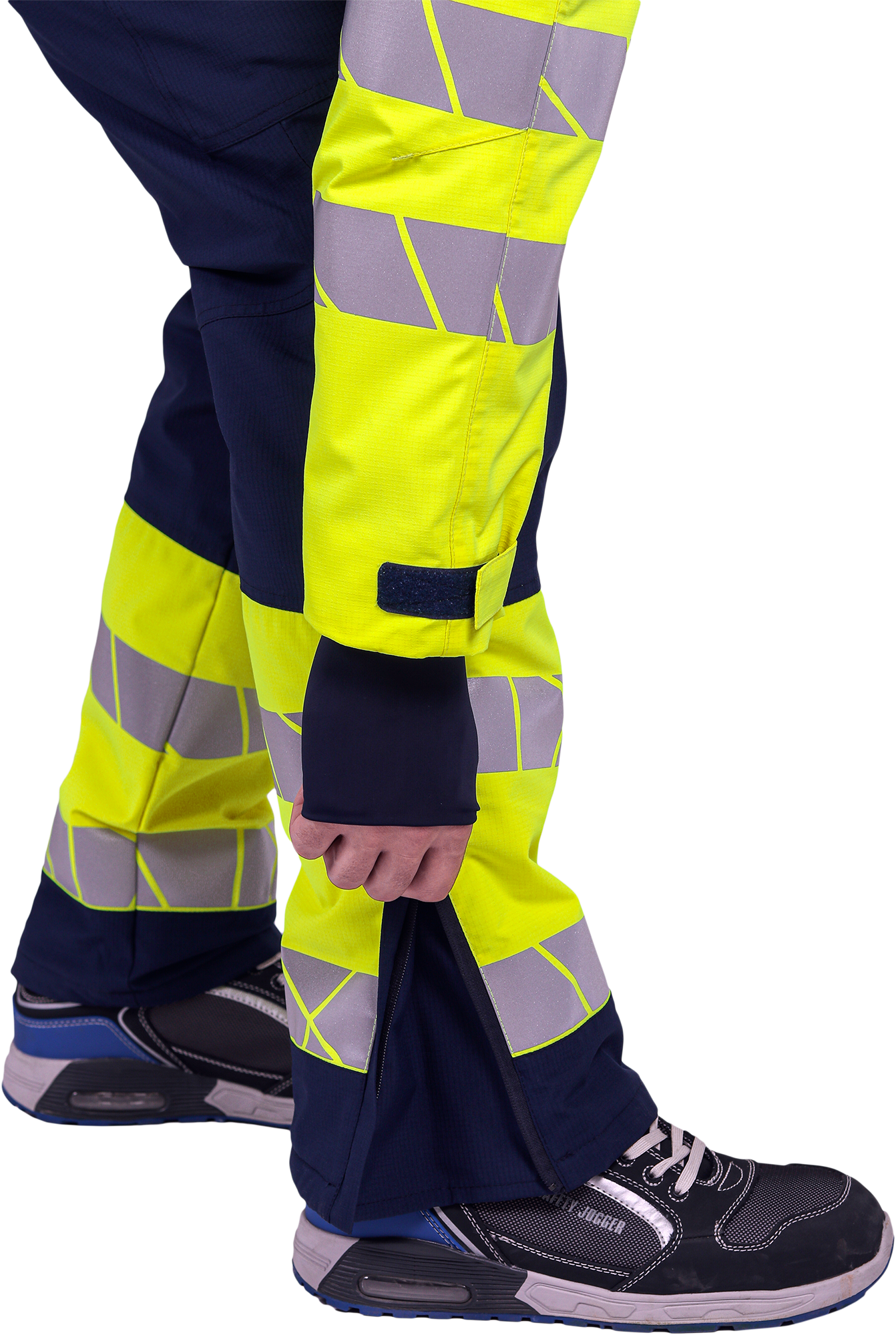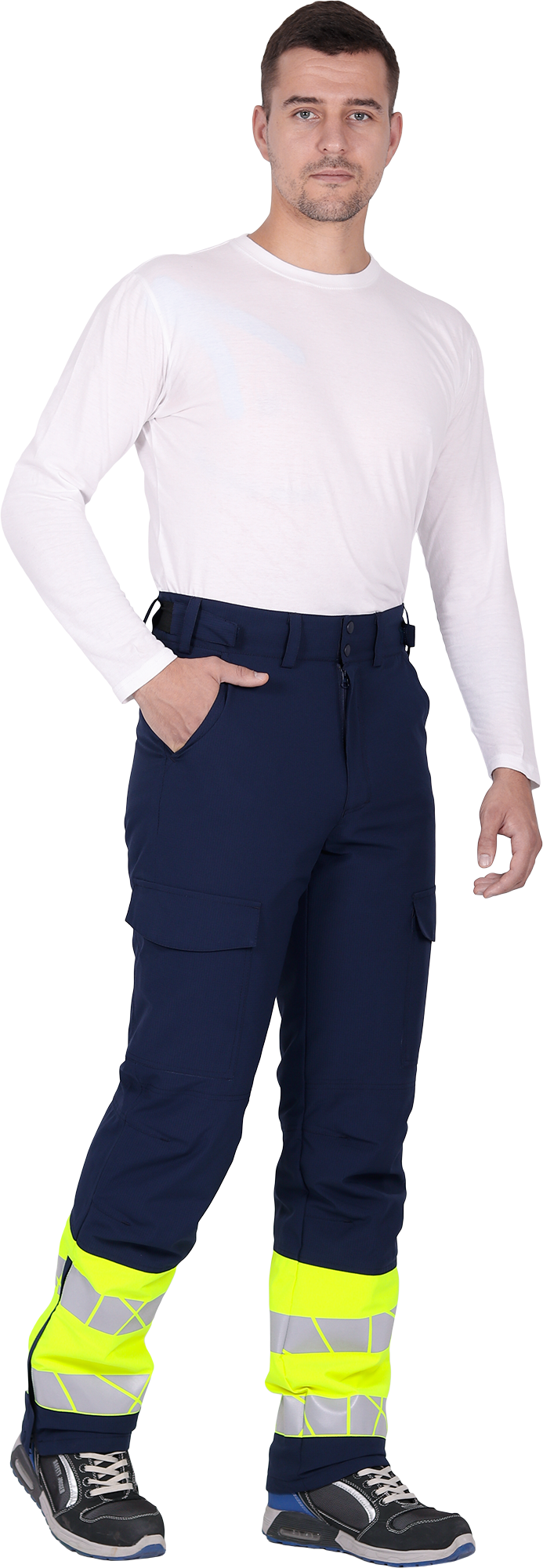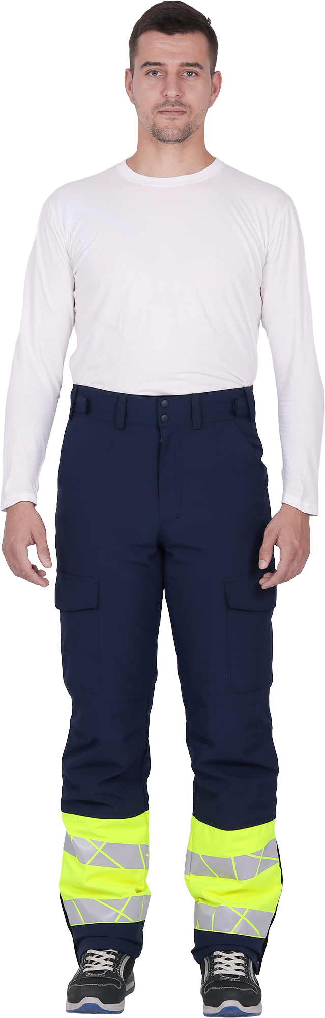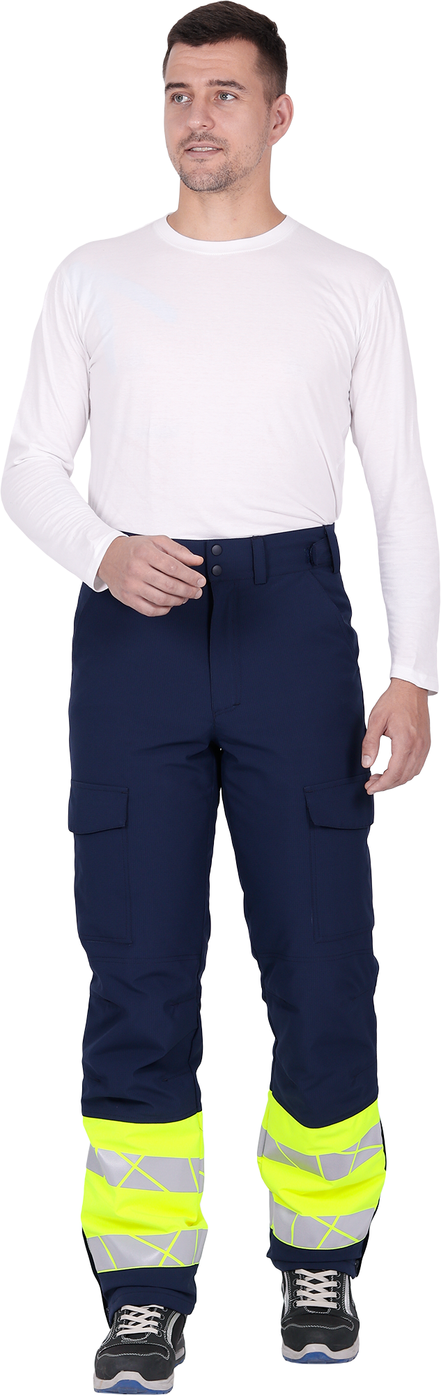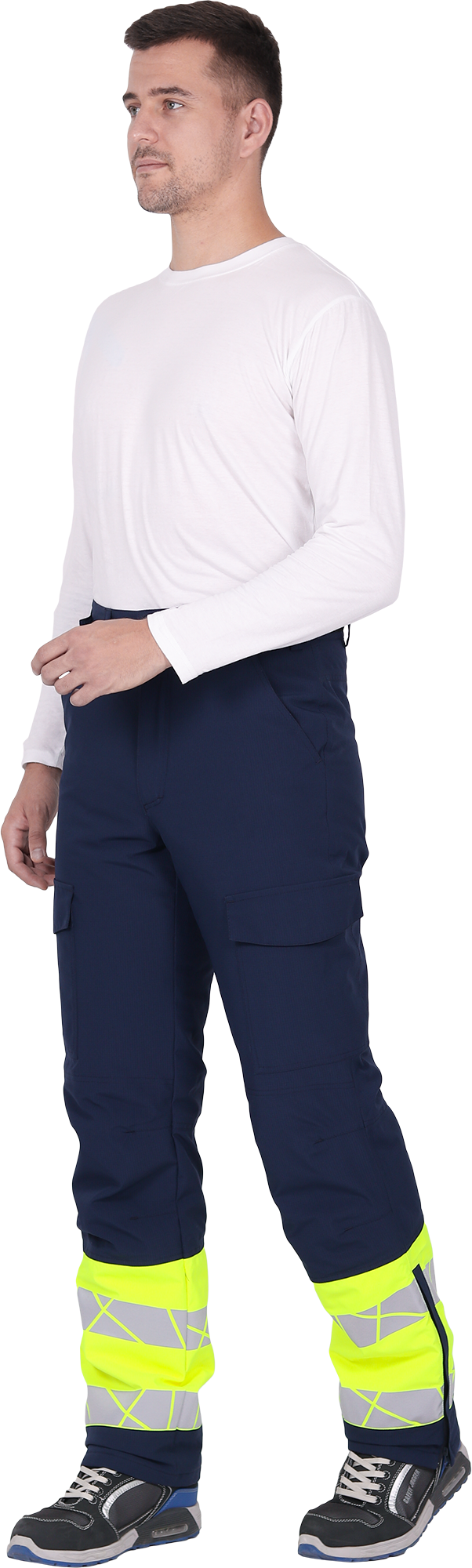 • две охватывающие термолкеевые световозвращающие полосы шириной 50 мм по низу брюк