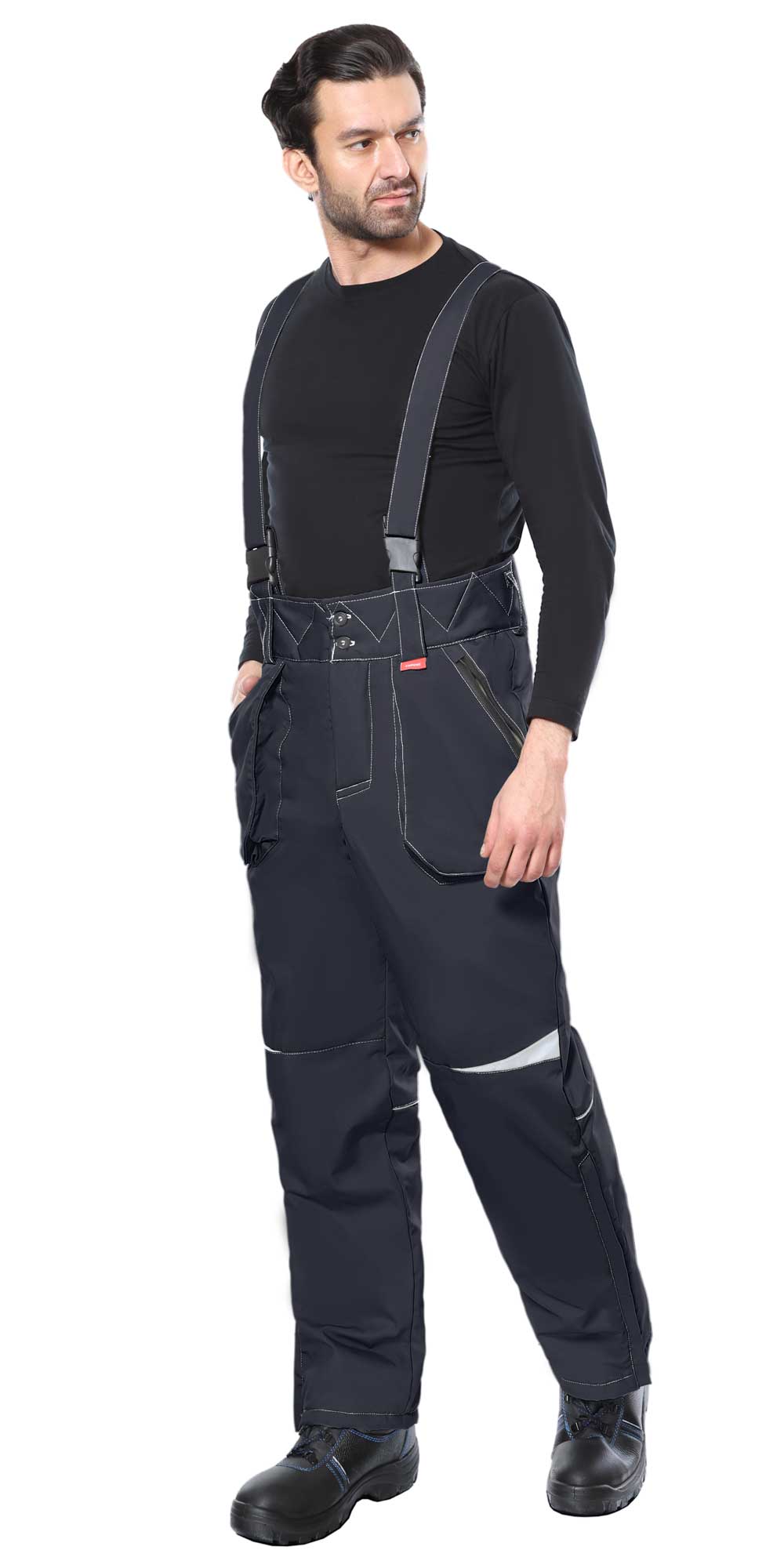 Для обозначения видимости в темное время суток в брюках предусмотрены светоотражающие элементы.