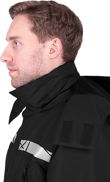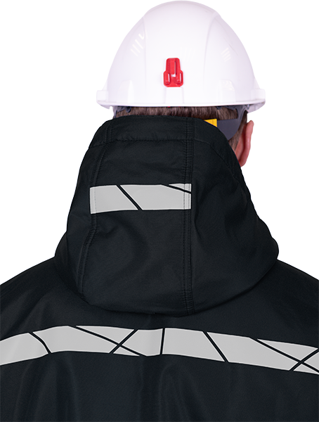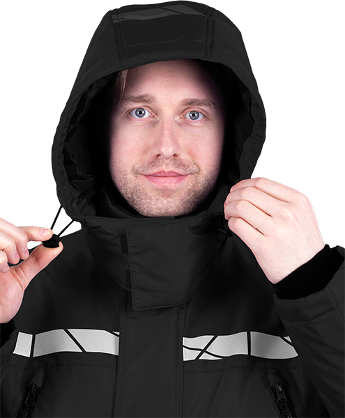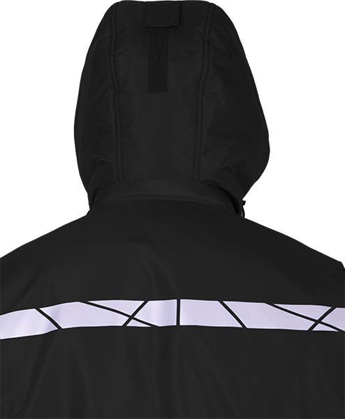 • термоклеевые световозвращающие полосы шириной 30 мм на кокетках полочки и спинки, внизу рукавов, брюк, на центральной части капюшона
