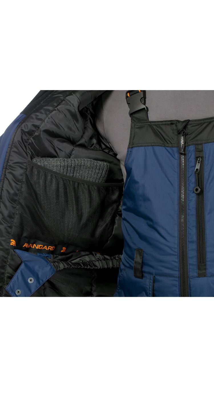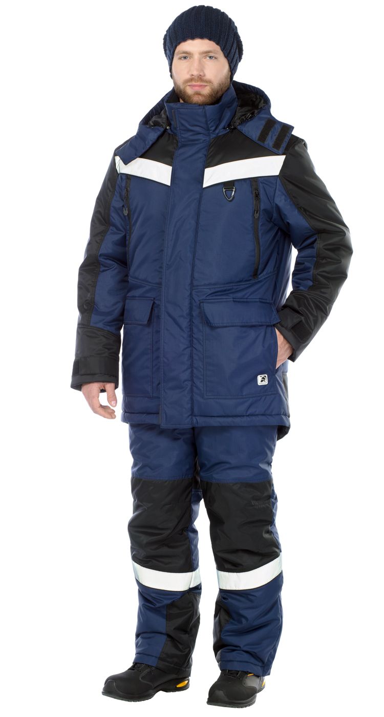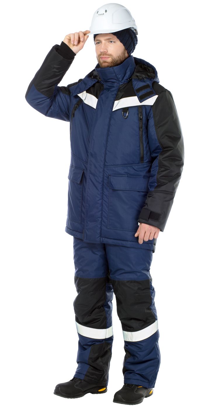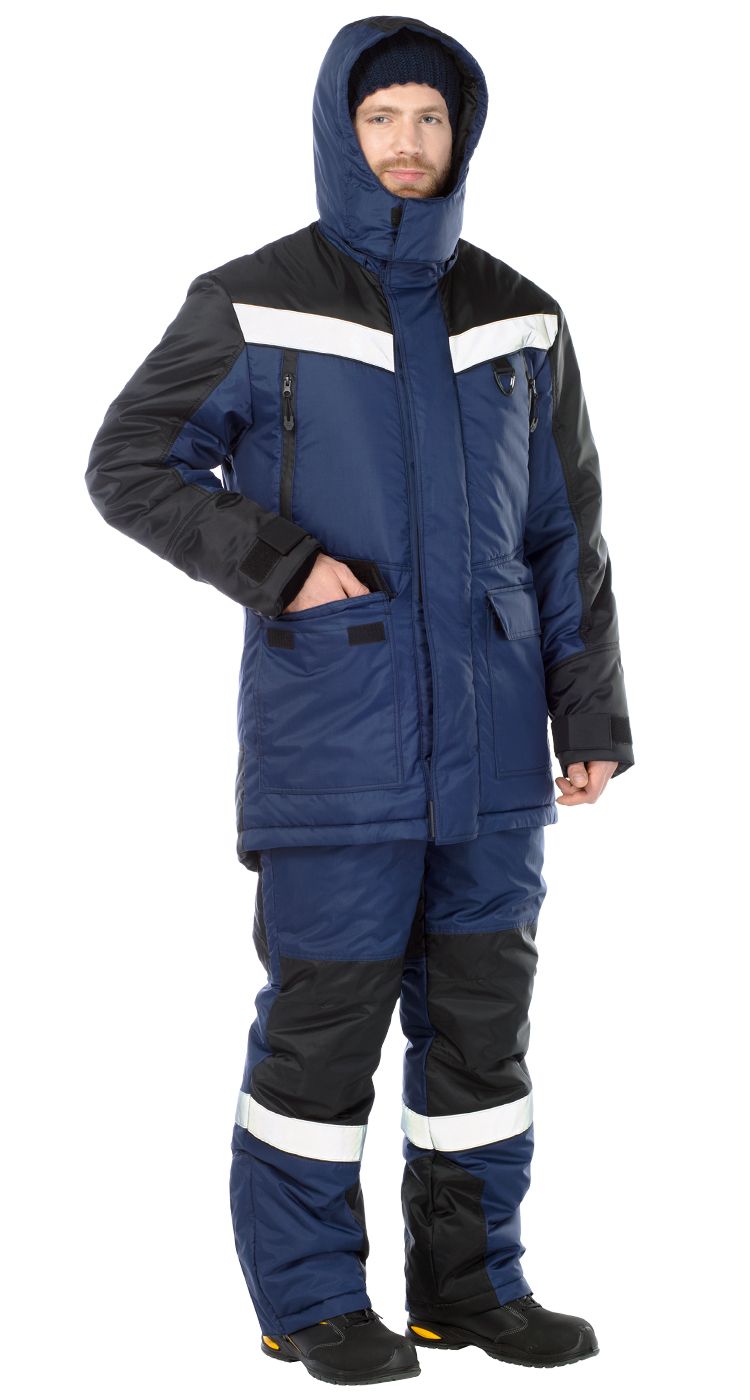 Костюм мужской утепленный, состоит из удлиненной куртки и полукомбинезона.