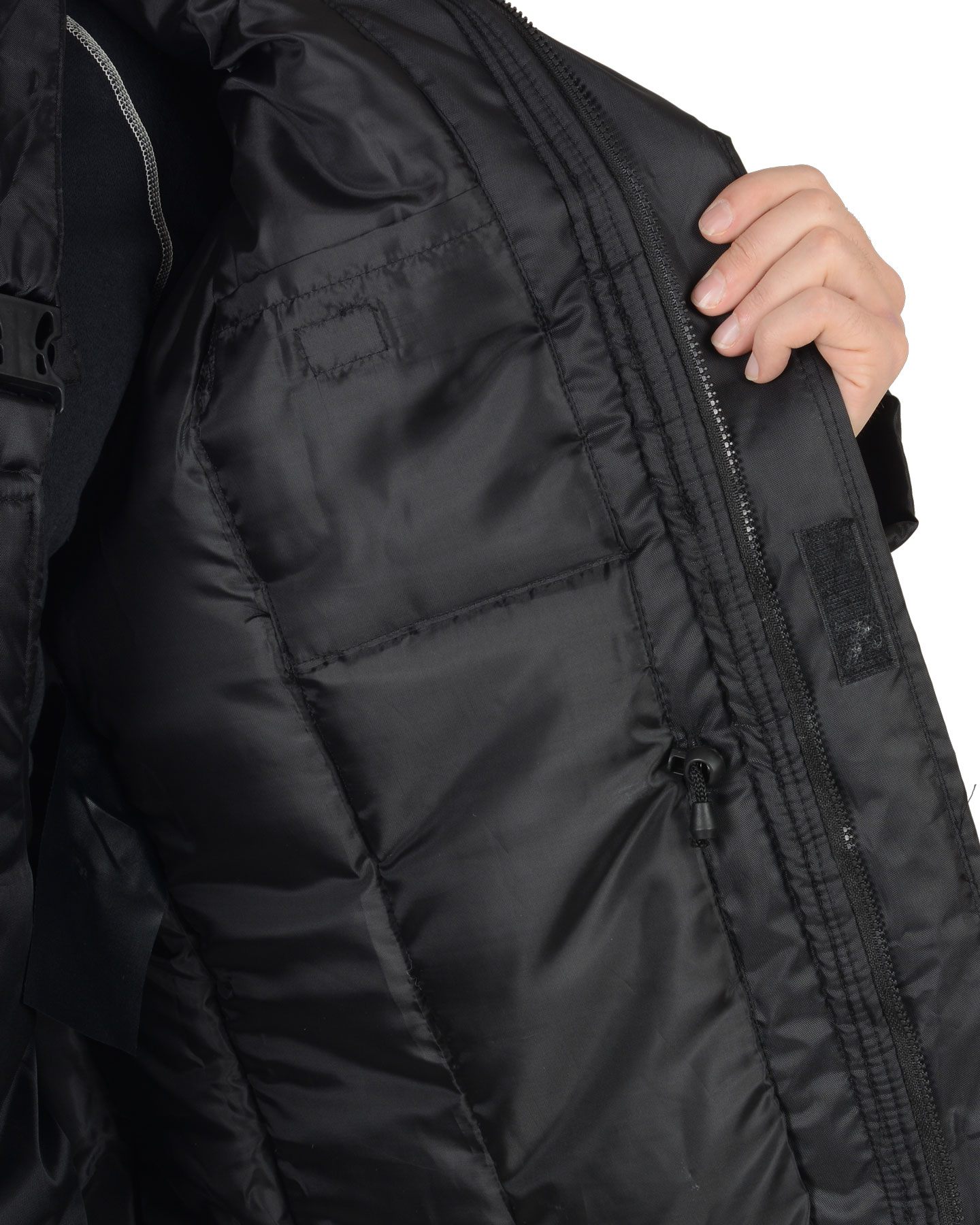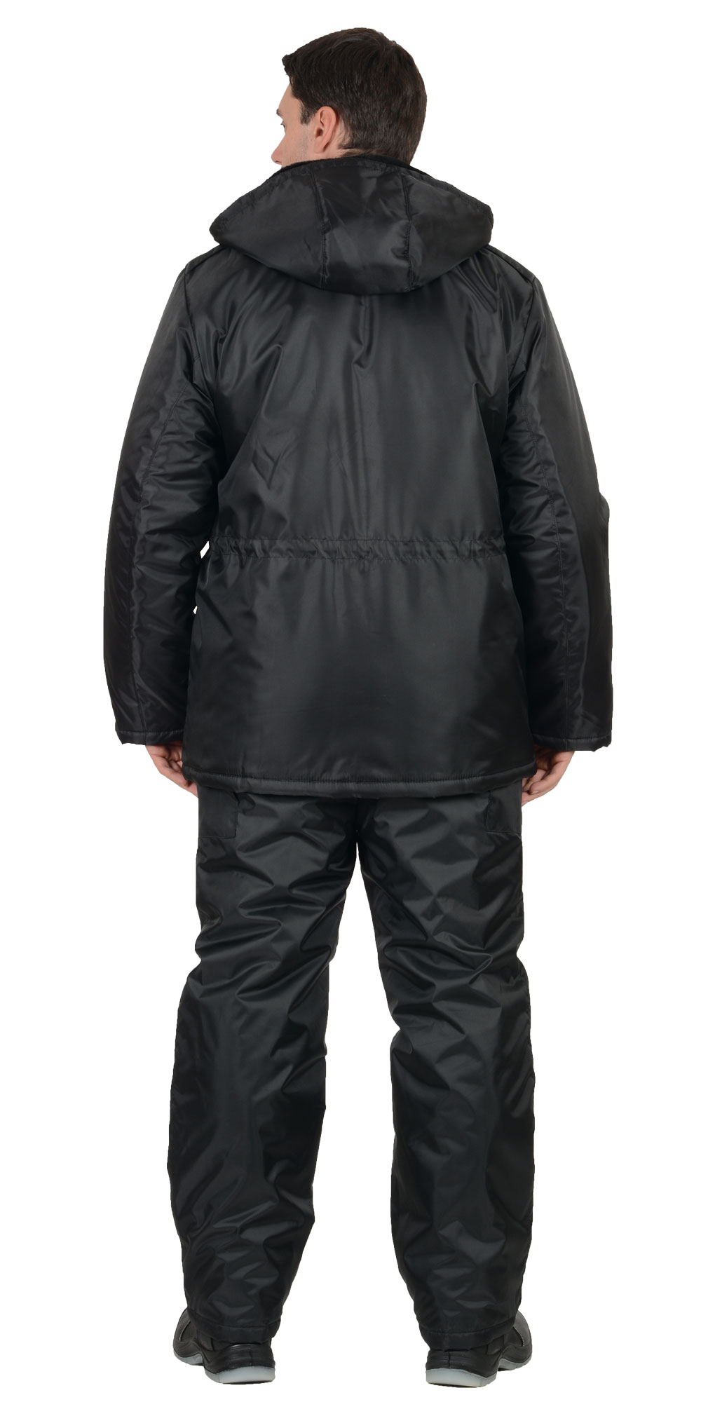 Куртка на молнии с ветрозащитным клапаном, съёмным капюшоном, накладными и прорезными карманами. Притачной меховой воротник, кулиска по линии талии, трикотажные манжеты внутри рукавов обеспечивают дополнительную теплозащиту.