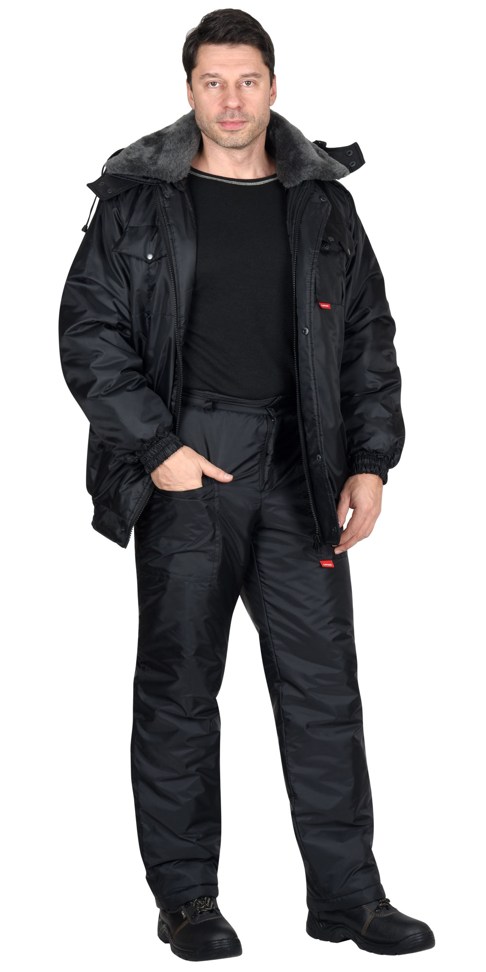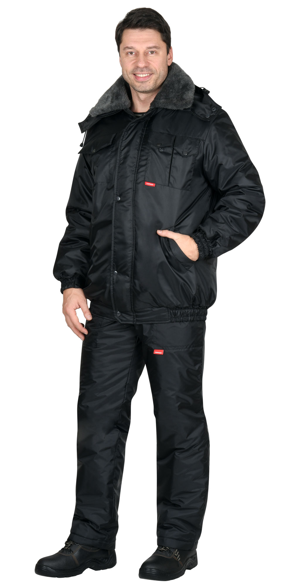Куртка короткая, с притачной утеплённой подкладкой, с центральной застёжкой на двухзамковую тесьму-«молния» и внешним ветрозащитным клапаном, застёгивающимся на кнопки; с отложным воротником; с погонами, застёгивающимися на кнопку по плечевым швам и пристёгивающимся меховым воротником. Рукава с манжетами с эластичной лентой с хлястиком и липучкой. Капюшон съёмный. Куртка с притачным поясом, с эластичной лентой в боковых частях пояса.