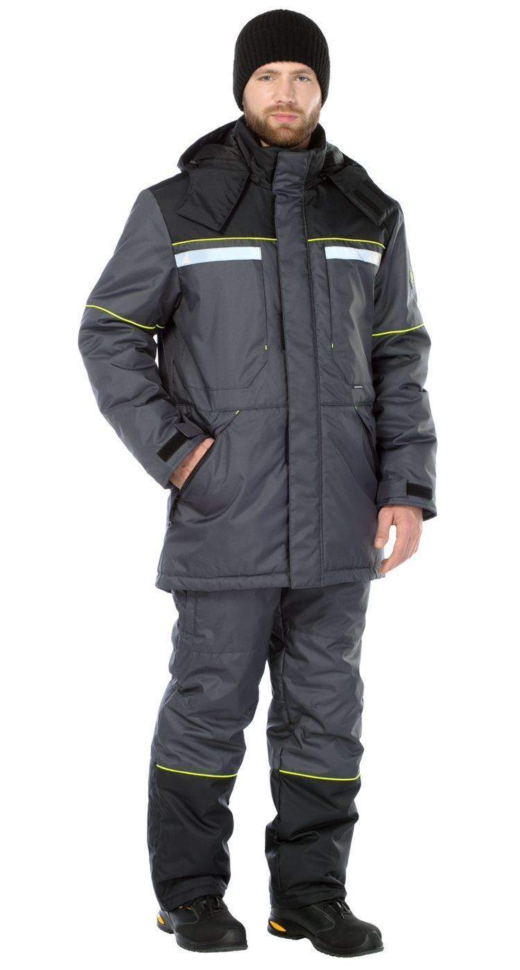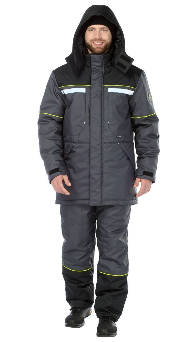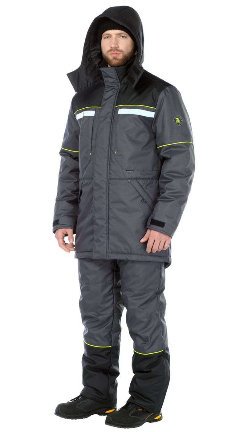 Костюм мужской утепленный, состоит из куртки и брюк.