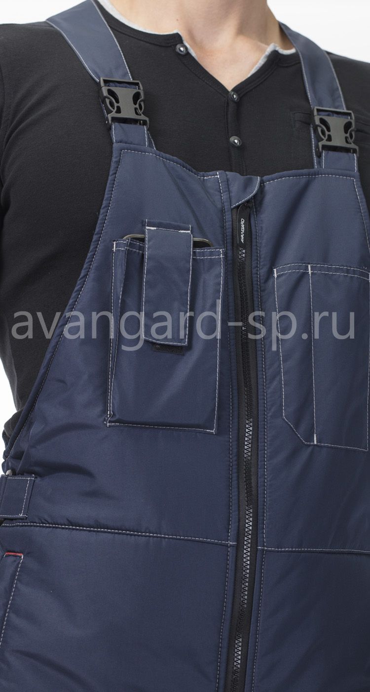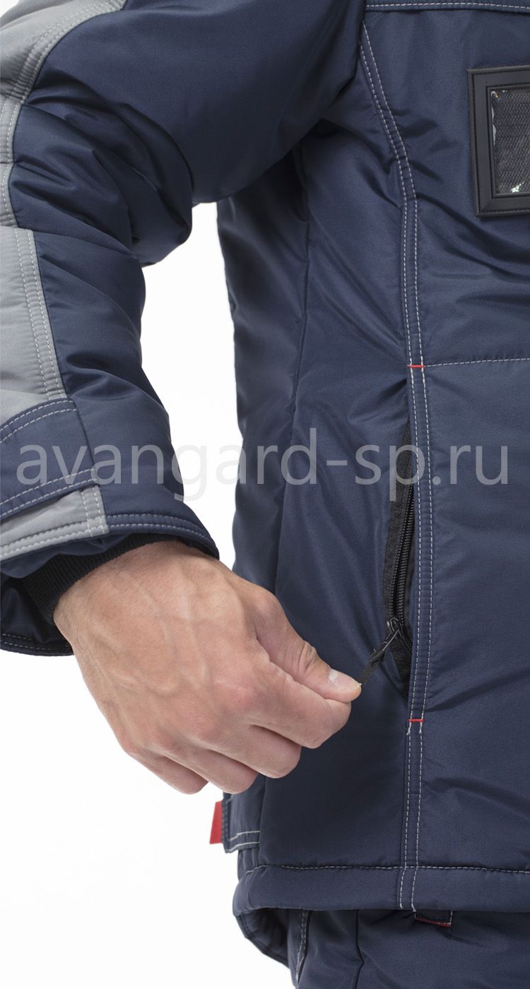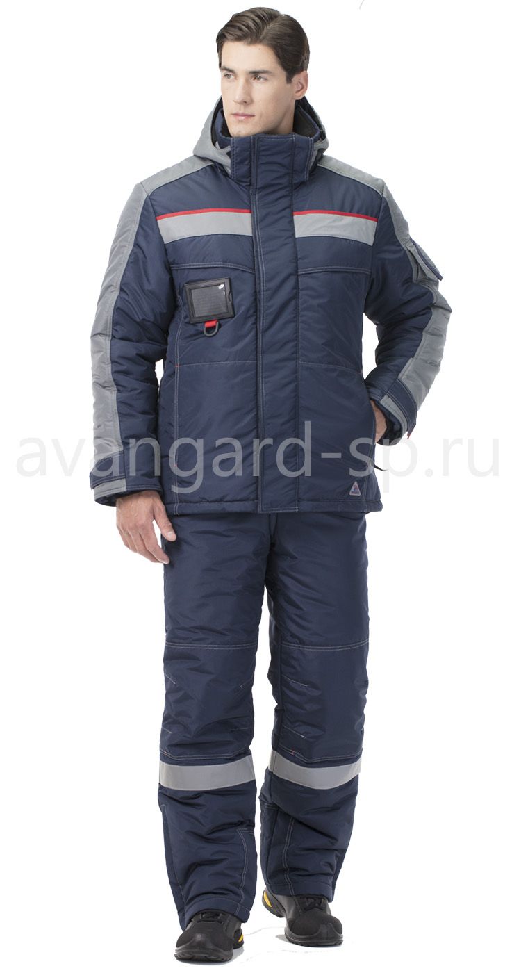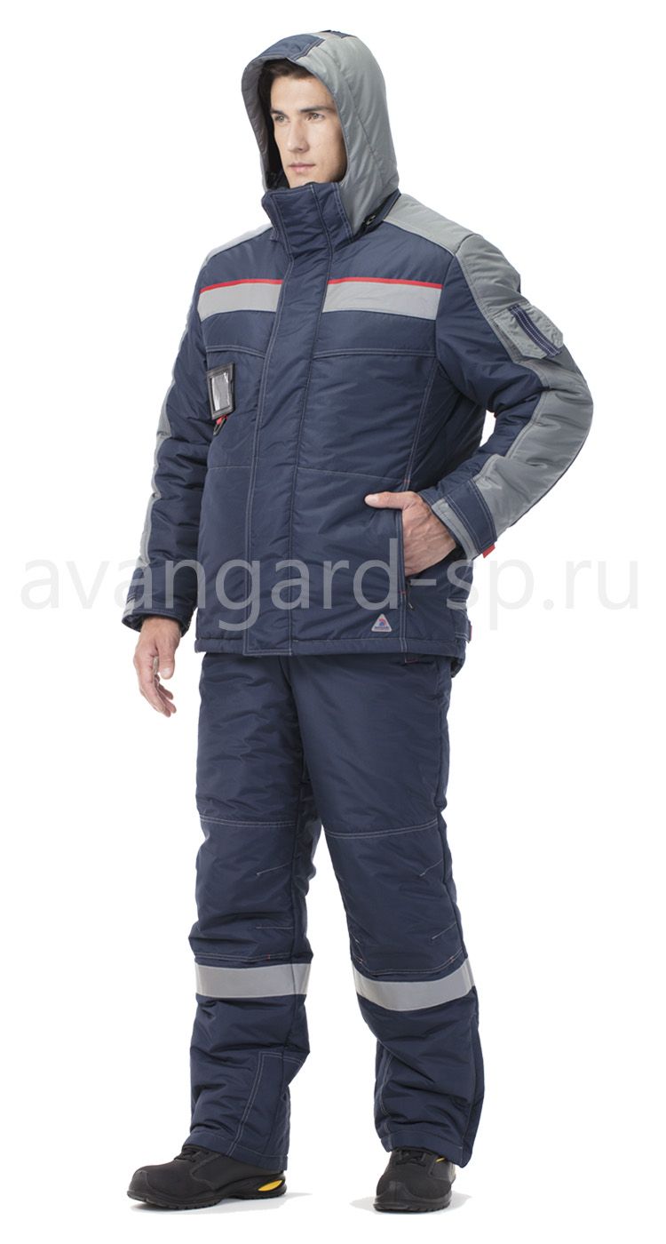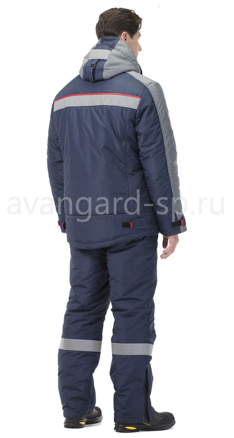 Костюм мужской утепленный, состоит из куртки и полукомбинезона из плотной курточной ткани с водоотталкивающими и ветрозащитными свойствами.