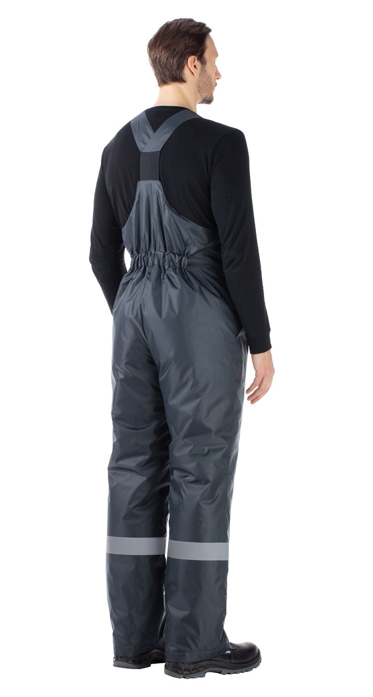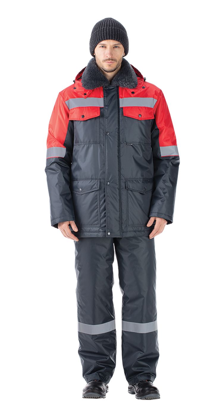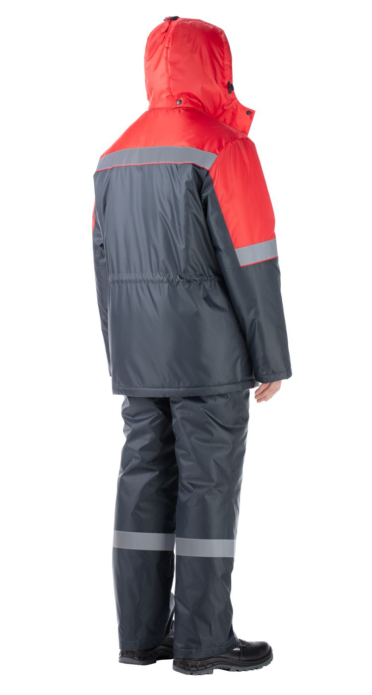 Для обеспечения безопасности в условиях плохой видимости по верху и на рукавах куртки, по низу брючин полукомбинезона расположены широкие световозвращающие полосы.