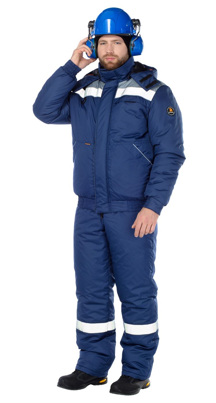 Костюм мужской утепленный, состоит из куртки и полукомбинезона.