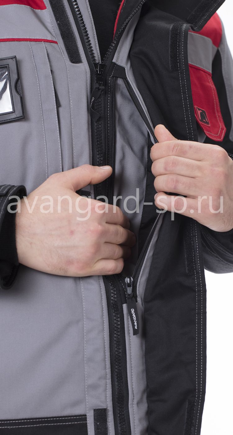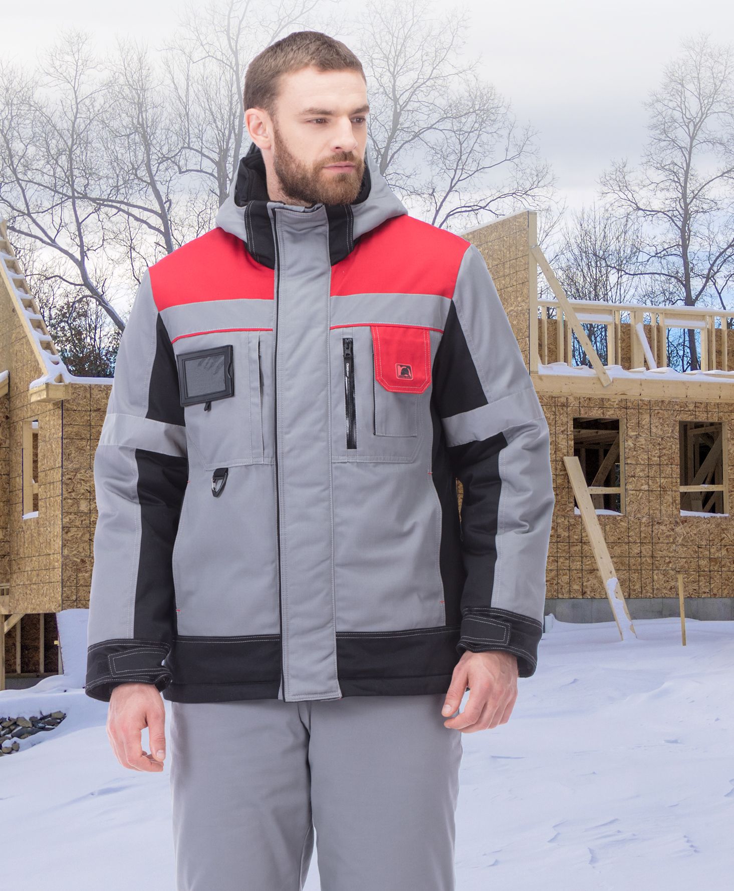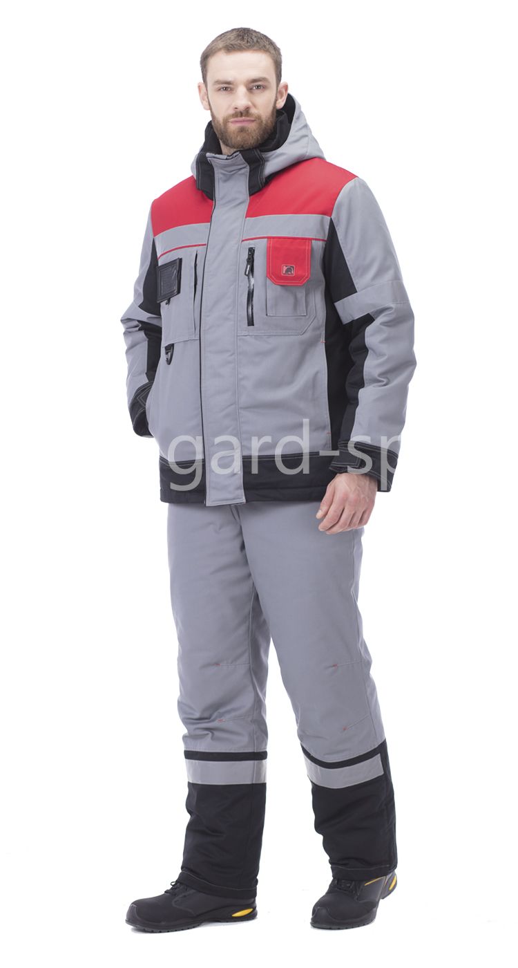 На куртке и по низу полукомбинезона – широкие световозвращающие полосы для работы в условиях плохой видимости.