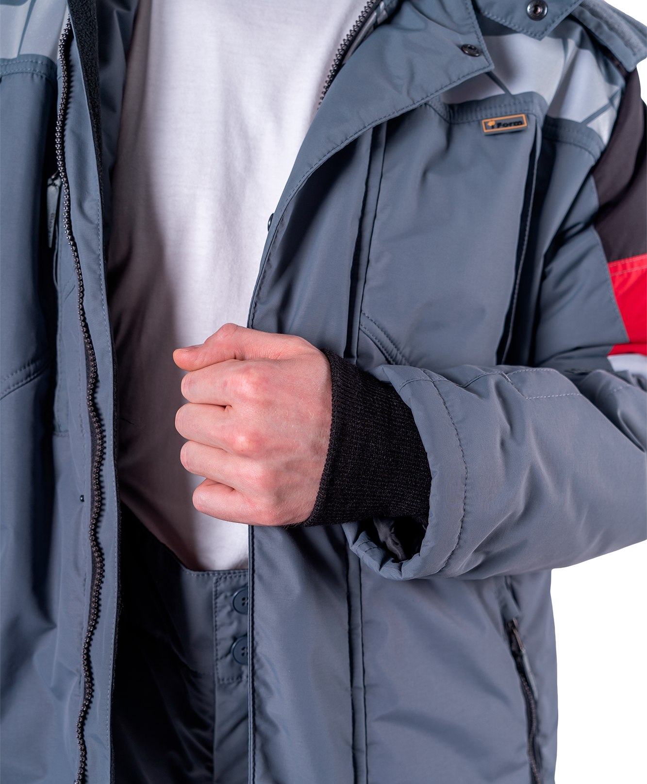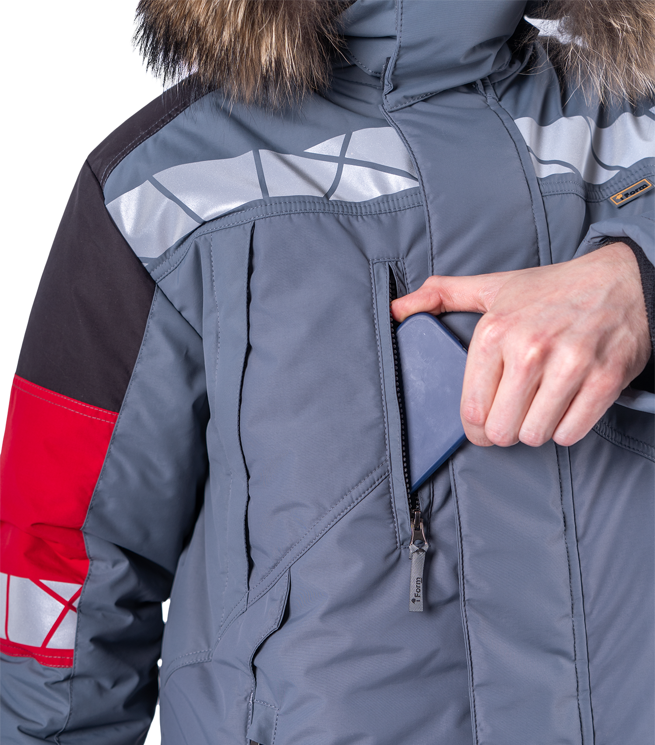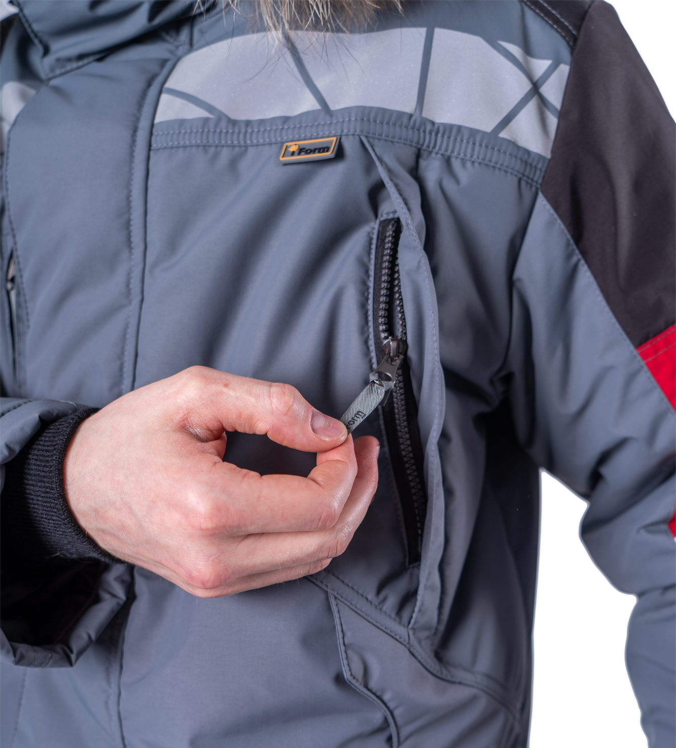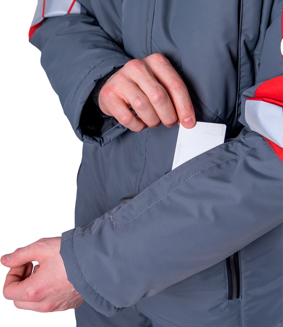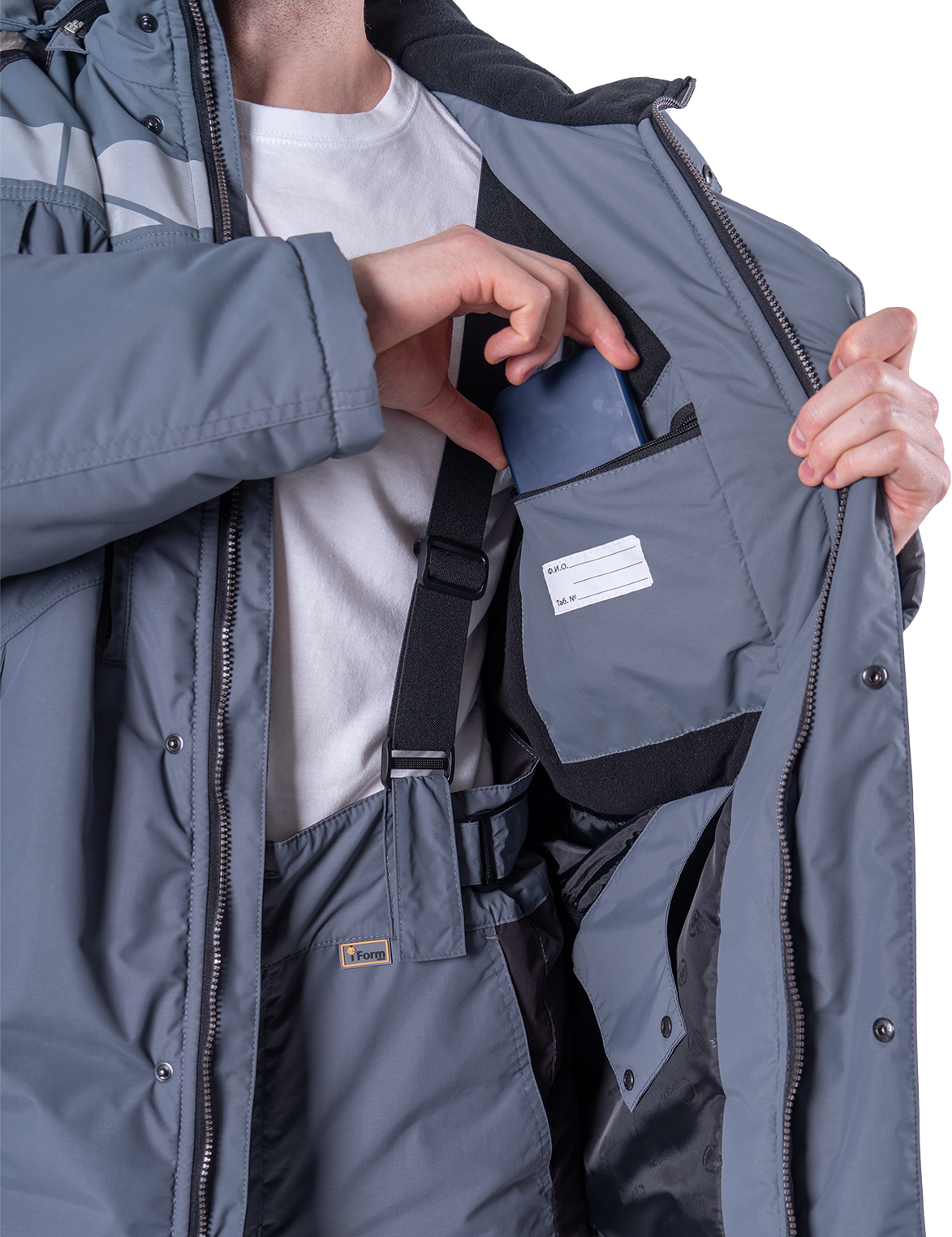 • шесть внешних карманов с застежкой на молнию: три нагрудных, два нижних, один на левом рукаве для пропуска