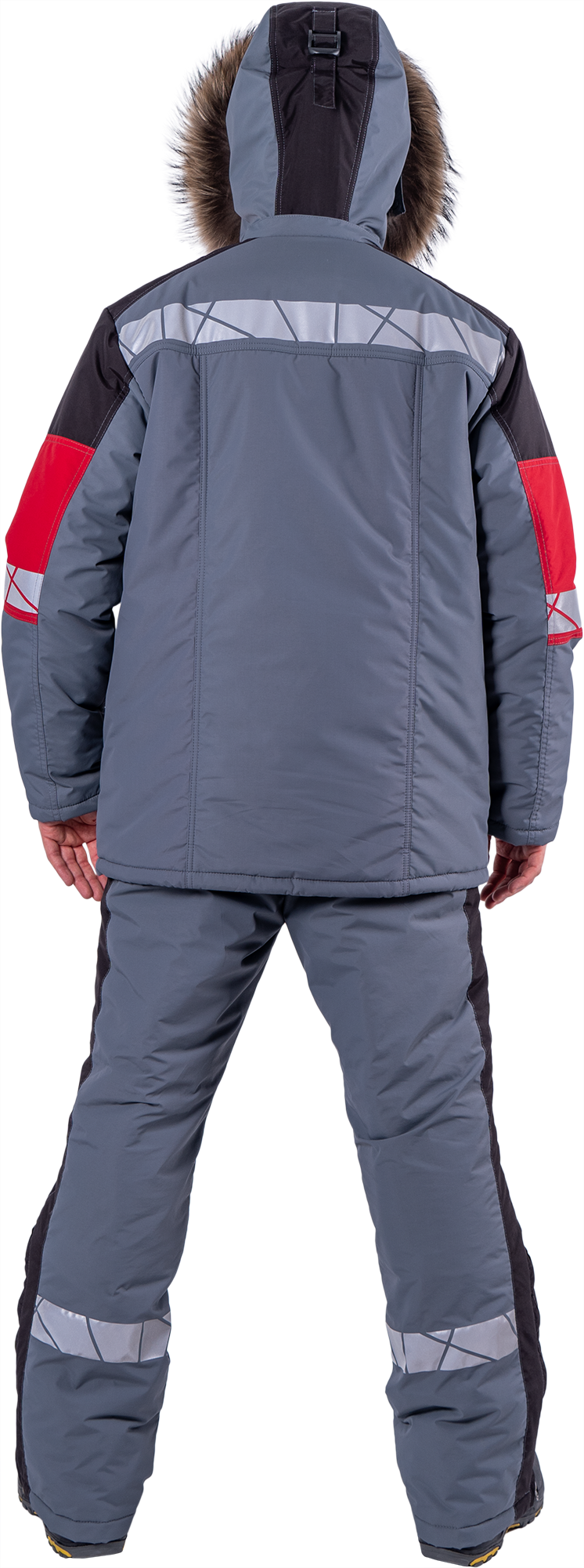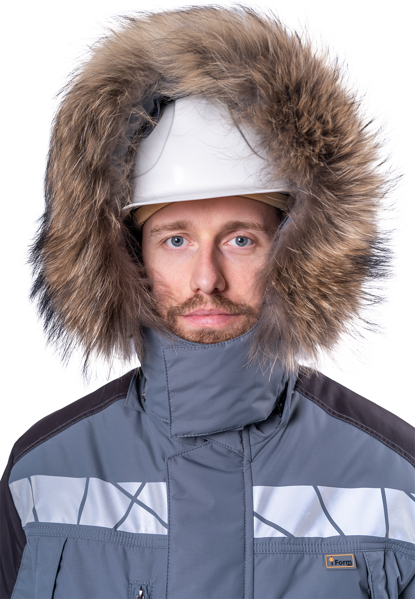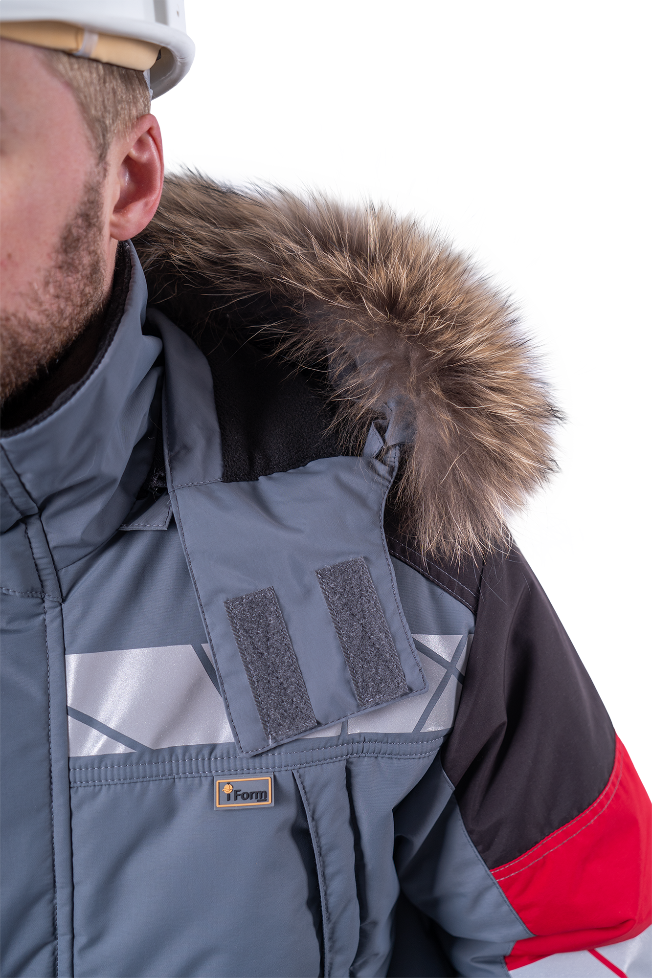 • регулируемый, съёмный капюшон со съёмной меховой опушкой из