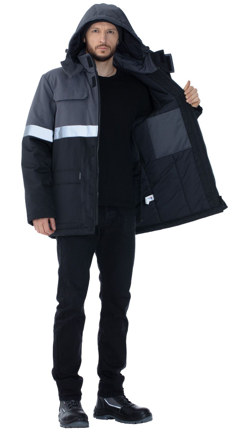 Для обеспечения безопасности в условиях плохой видимости по низу кокеток и на рукавах расположены широкие световозвращающие полосы.