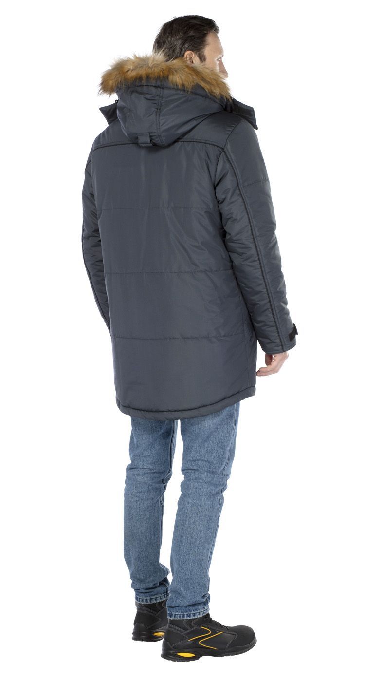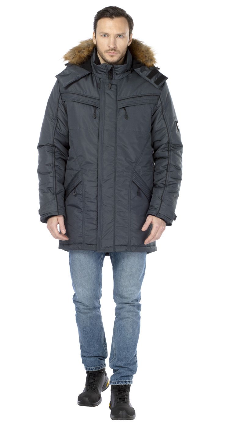 Куртка-парка, с центральной застежкой на двухзамковую молнию под ветрозащитной планкой на липучках и удлиненной спинкой. Внутренняя ветрозащитная планка закрывает верхний край молнии и дополнительно защищает от ветра.