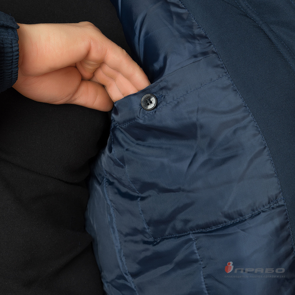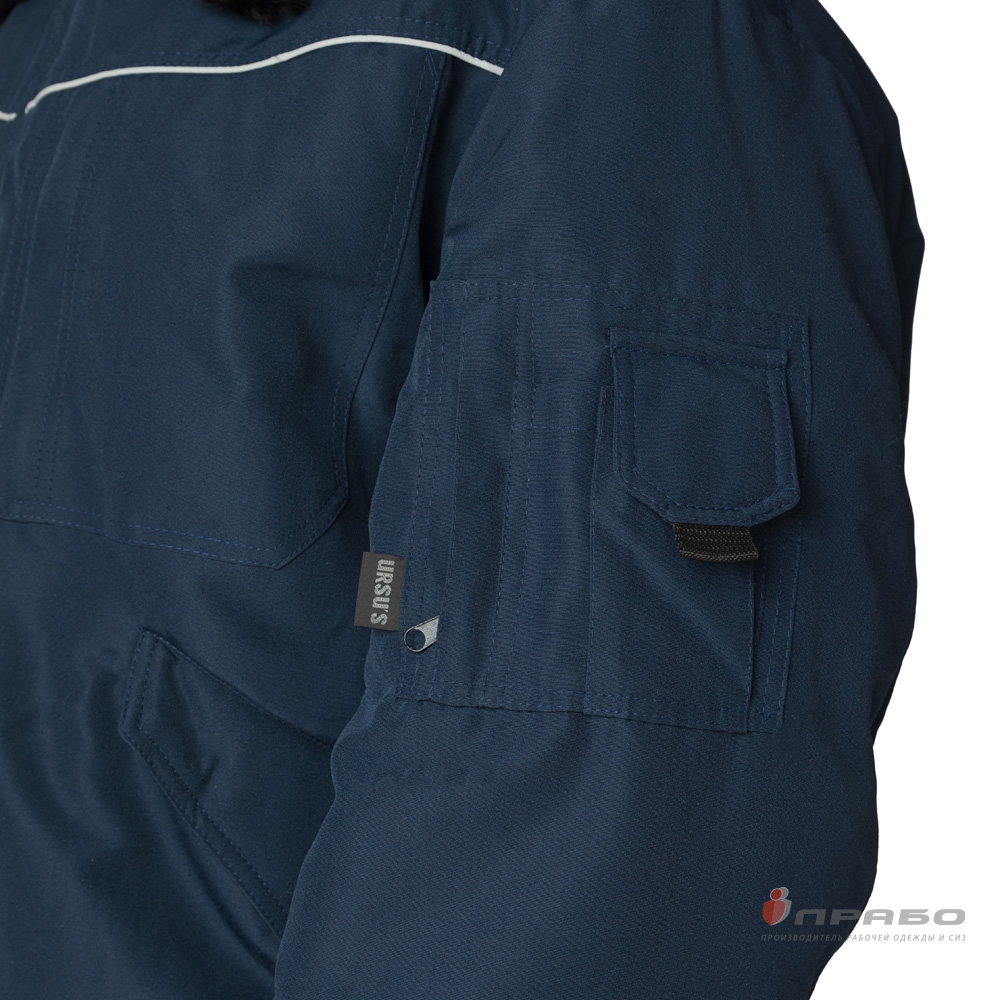 Карманы: 2 нагрудных накладных кармана с застёжкой на молнию; 2 нижних прорезных кармана с клапаном на кнопке; двойной карман на левом предплечье: объёмный карман с клапаном на липучке для мобильного телефона или рации, прорезной карман с застёжкой на молнию; внутренний карман с застёжкой на пуговицу.