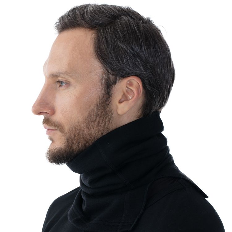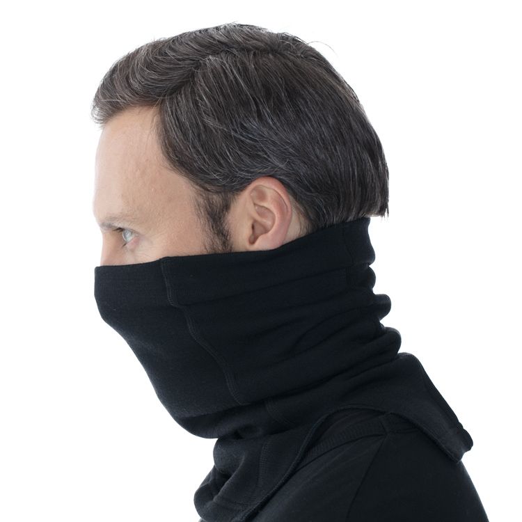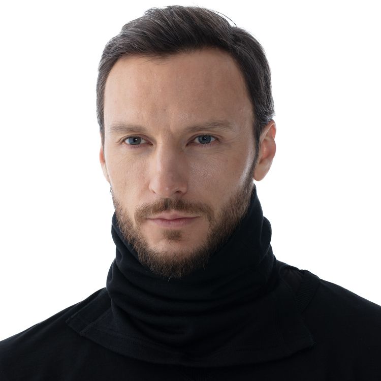 Шарф-маска из теплого трикотажа с мягким начесом с изнаночной стороны, с плечевыми разрезами для удобства ношения. Можно носить в качестве шарфа, а в мороз и при холодном ветре использовать как лицевую маску.