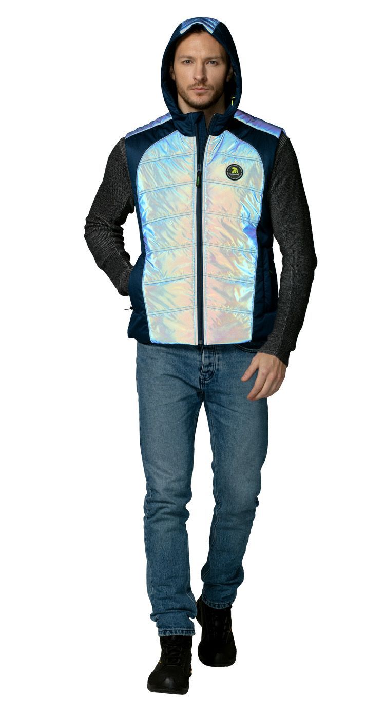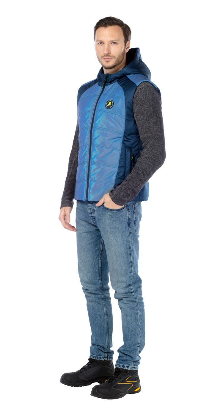 Жилет для активного отдыха и спорта с малообъемным силуэтом из тканей с ветронепроницаемыми и водоотталкивающими свойствами.