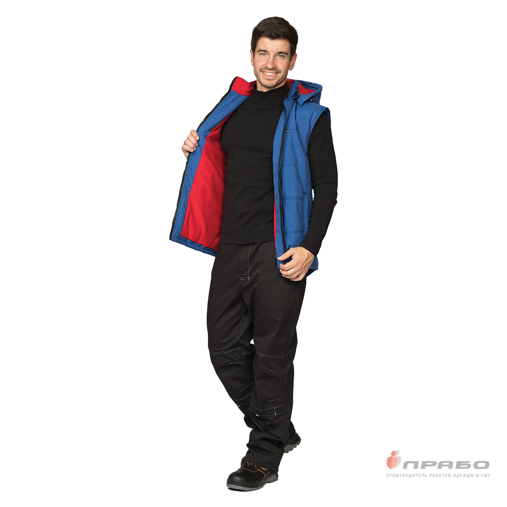 Жилет: утеплённый прямого силуэта с удлинённой спинкой, стёганный двойными горизонтальными строчками, центральная бортовая застёжка на молнию, флисовая подкладка обеспечит удобство при эксплуатации. Воротник-стойка утеплённый, внутри из флиса.