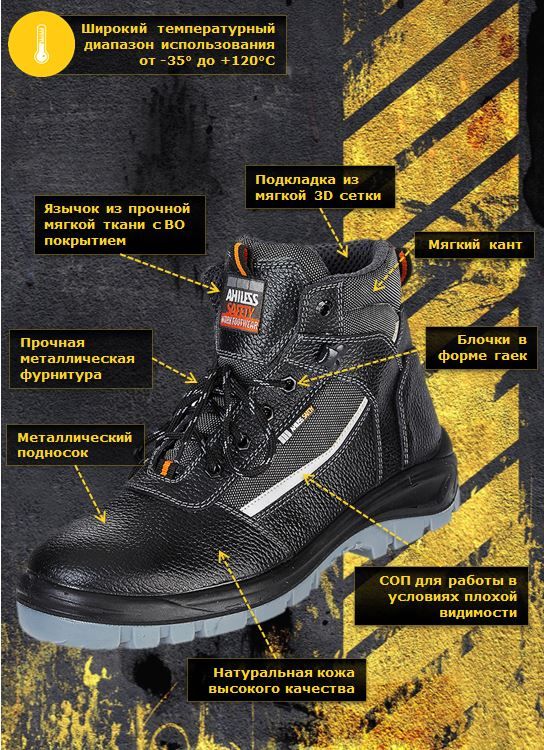 • подошва имеет широкий температурный диапазон использования от -35° до +120°С,