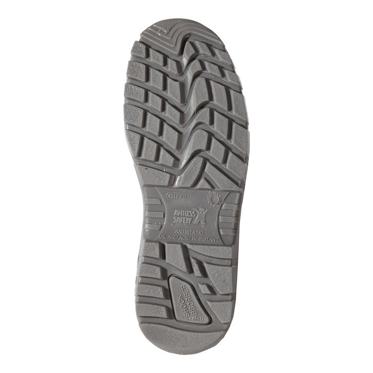 - двухслойная подошва выполнена из ПУ/ТПУ, обладает стойкостью к воздействию масел, сырой нефти, иных нефтепродуктов, растворов кислот и щелочей, нетоксичной и взрывоопасной пыли
