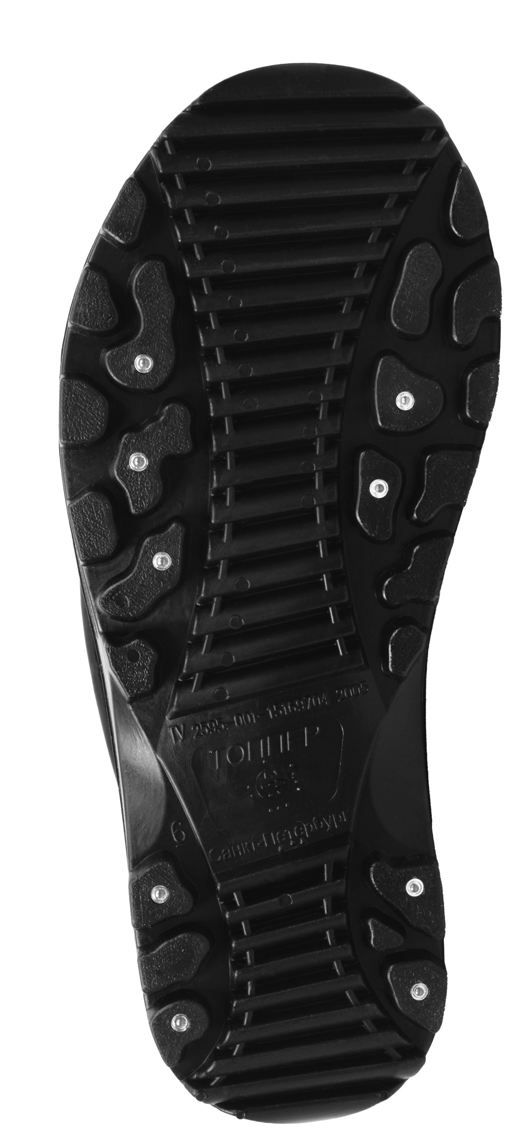 Галоша: морозостойкая МБС, КЩС резина; для повышения противоскольжения установлены стальные шипы с якорной посадкой; протектор глубокий и открытый.