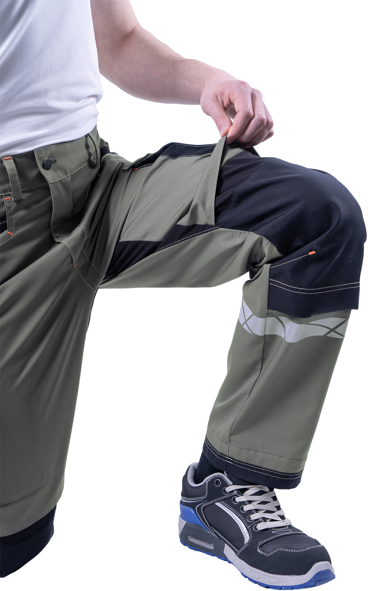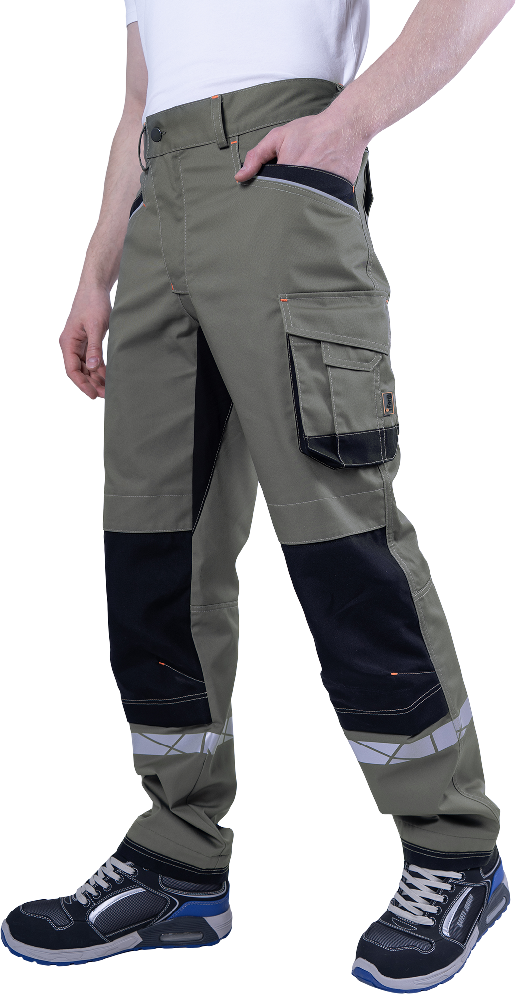 • под наколенниками охватывающая термоклеевая световозвращающая полоса шириной 30 мм