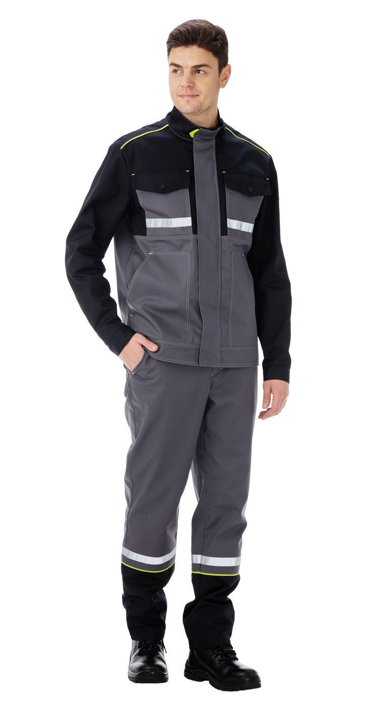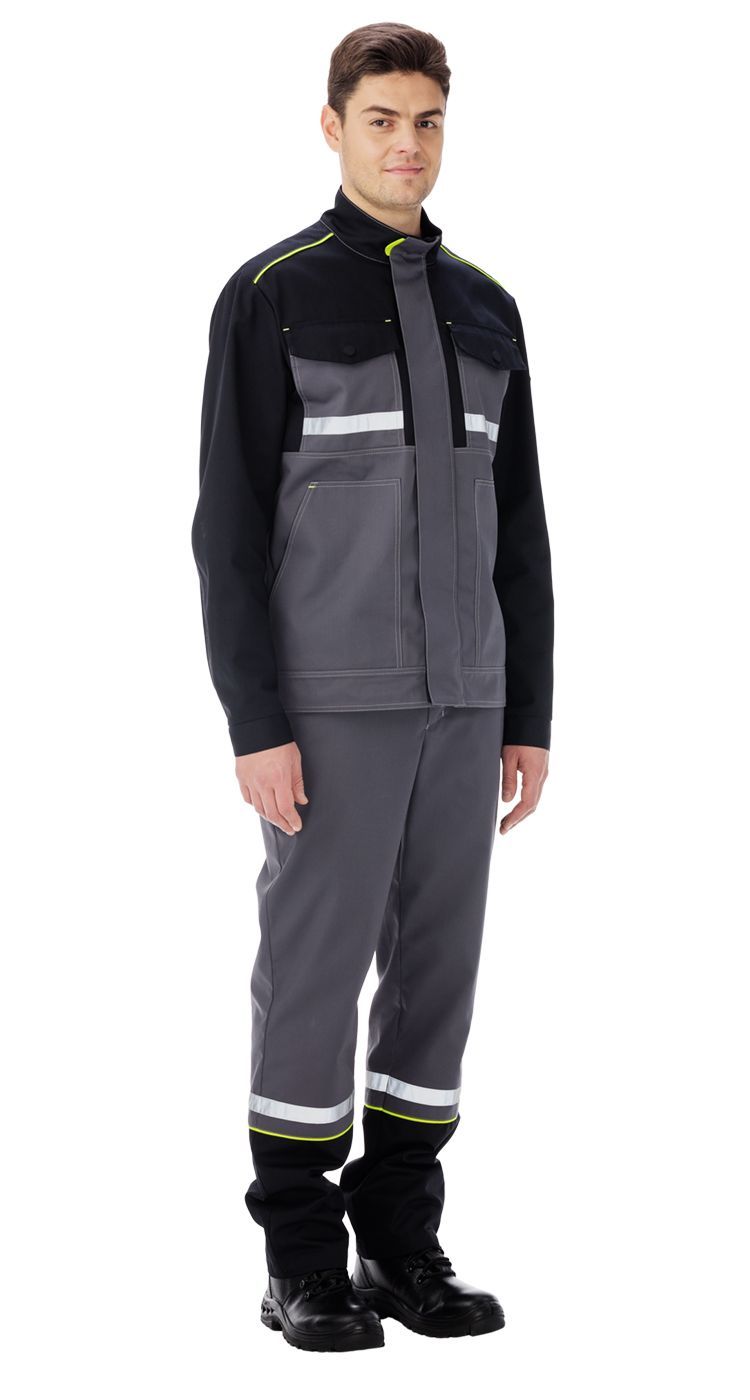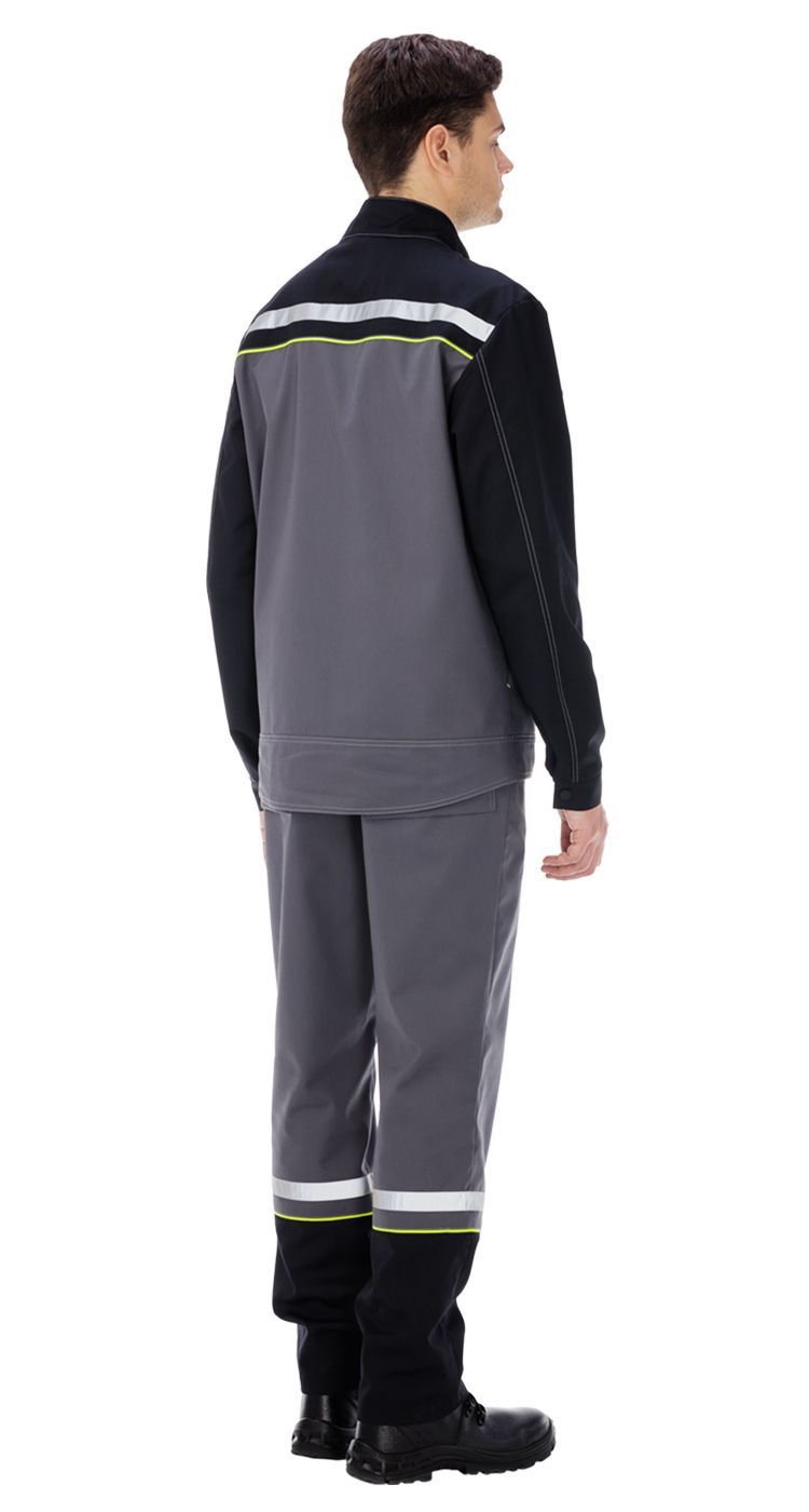 Для обеспечения безопасности в условиях плохой видимости - световозвращающие полосы на карманах полочки, кокетке спинки, по низу брюк.