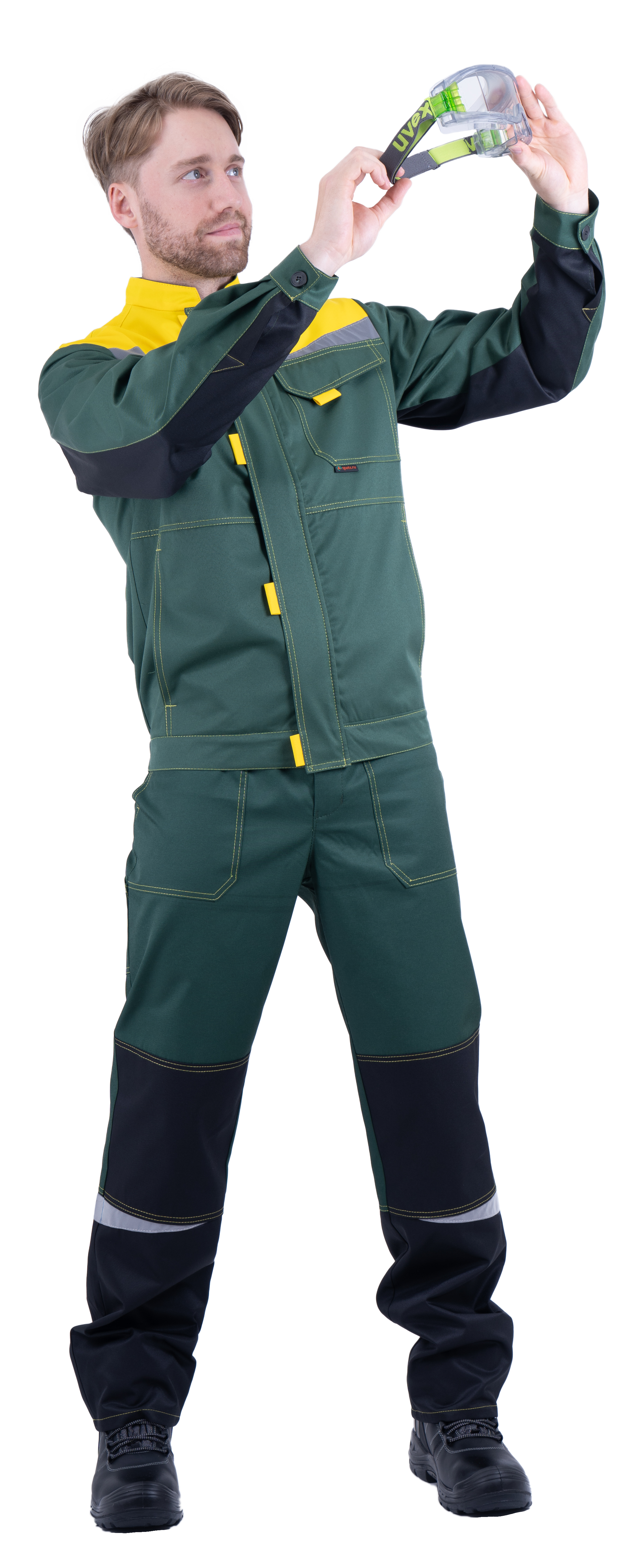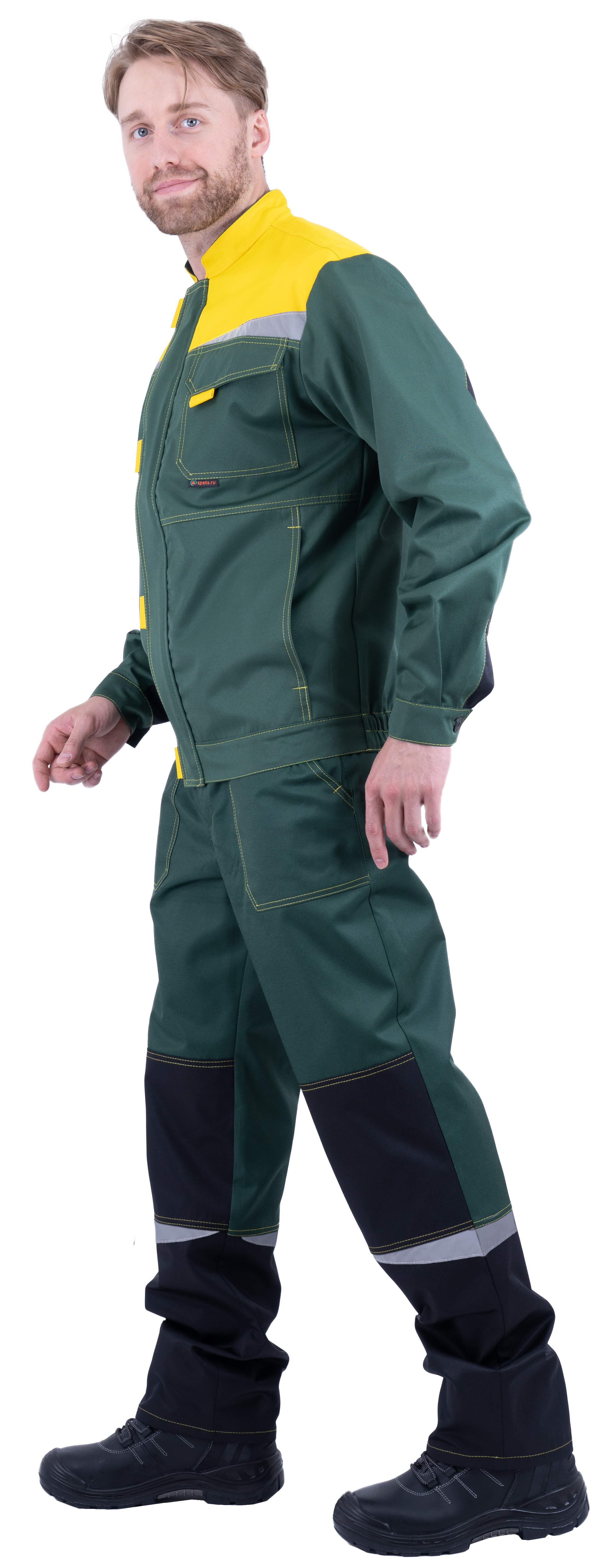Костюм состоит из куртки и брюк.