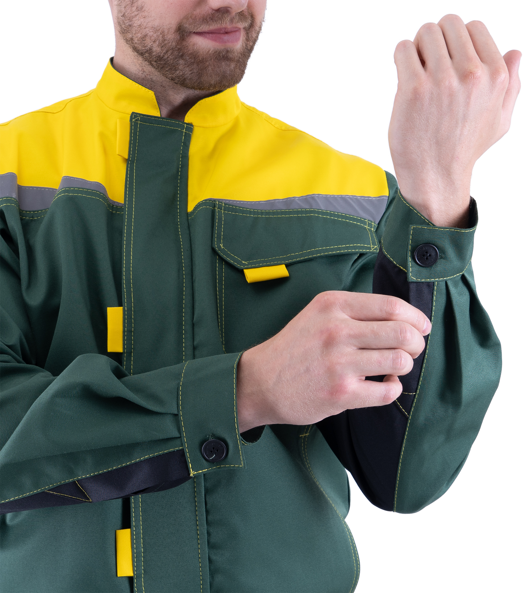• рукава двухшовные с вертикальными шлицами и с манжетами,