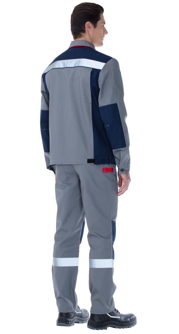 По низу кокеток куртки и по низу брюк расположены широкие световозвращающие полосы для безопасной работы в условиях плохой видимости.