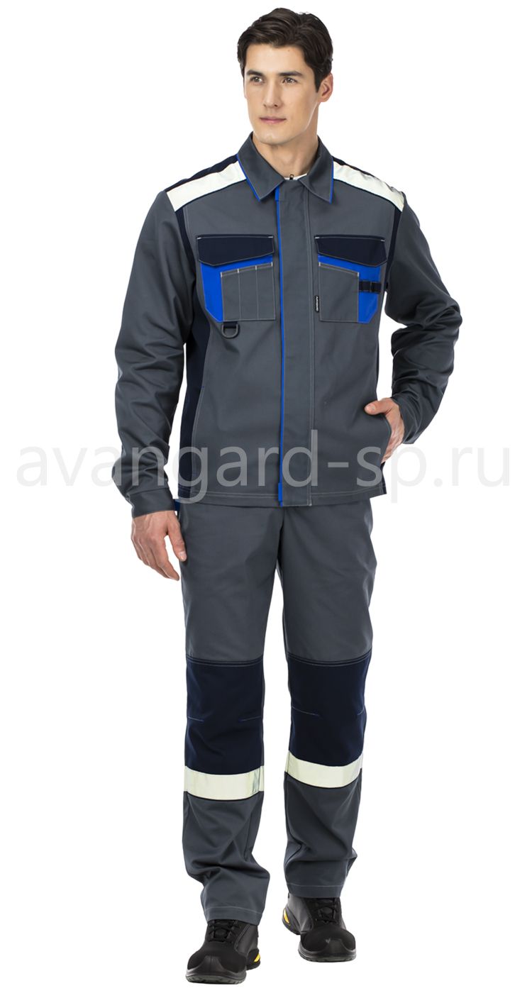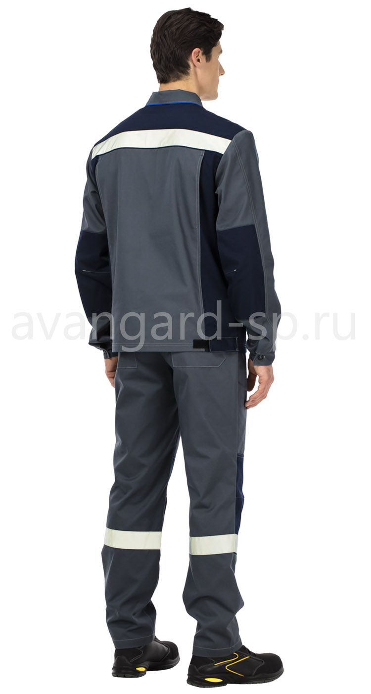 По низу кокеток куртки и по низу брюк расположены широкие световозвращающие полосы для безопасной работы в условиях плохой видимости.
