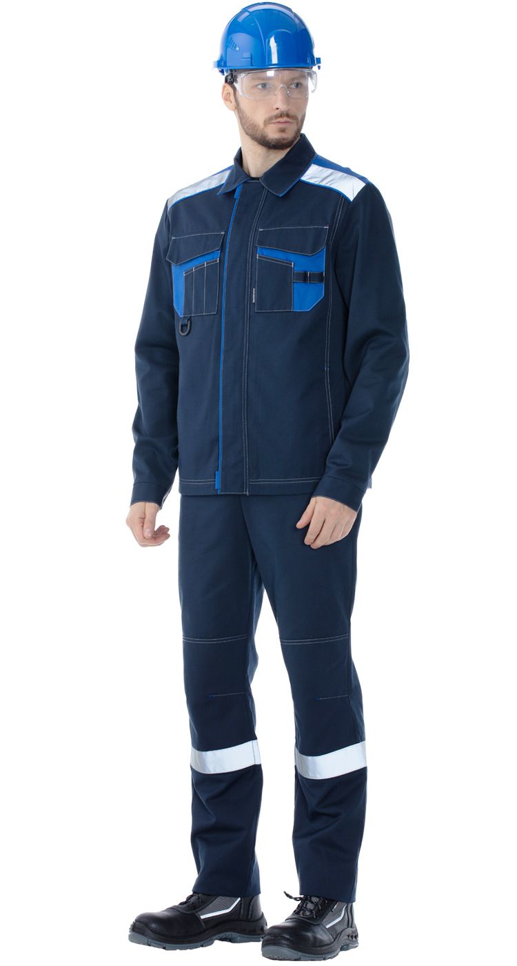 По низу кокеток куртки и по низу брюк расположены широкие световозвращающие полосы для безопасной работы в условиях плохой видимости.