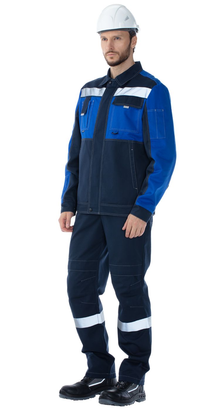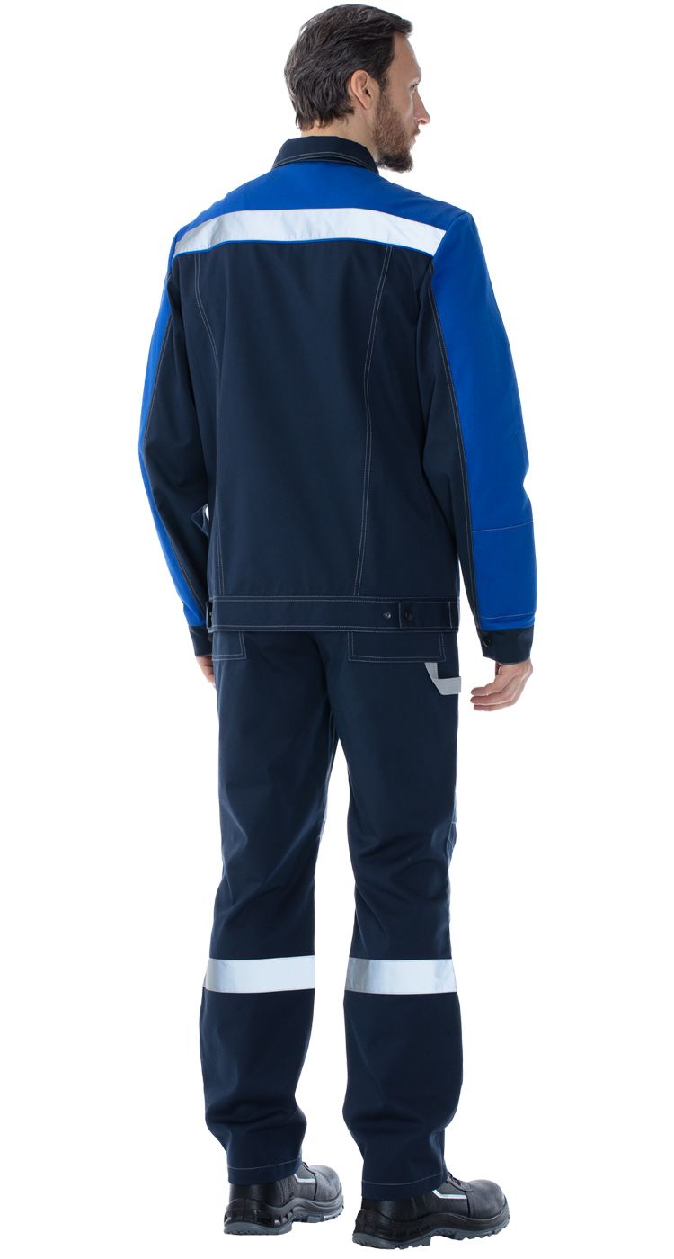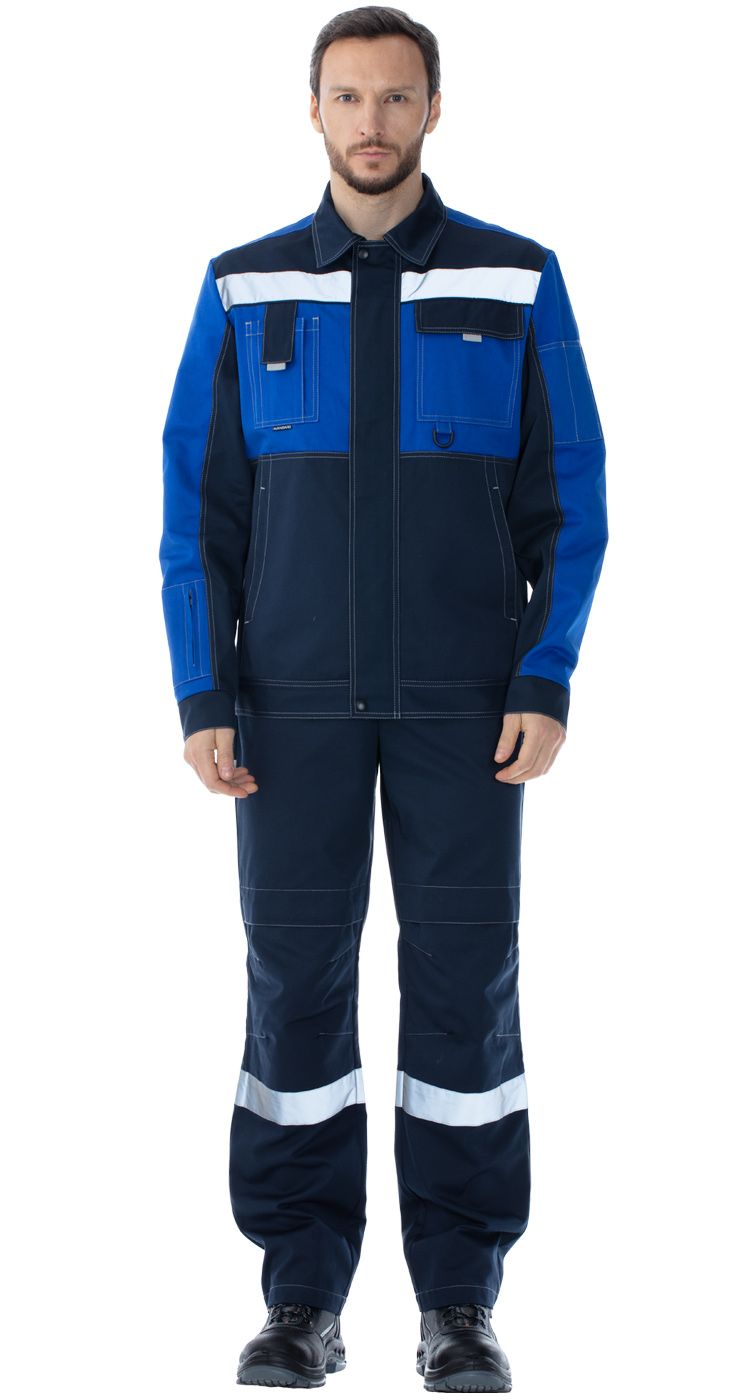 По низу кокеток куртки и по низу полукомбинезона расположены широкие световозвращающие полосы для безопасной работы в условиях плохой видимости.