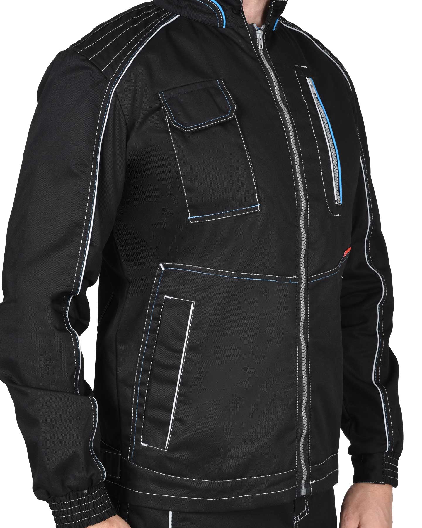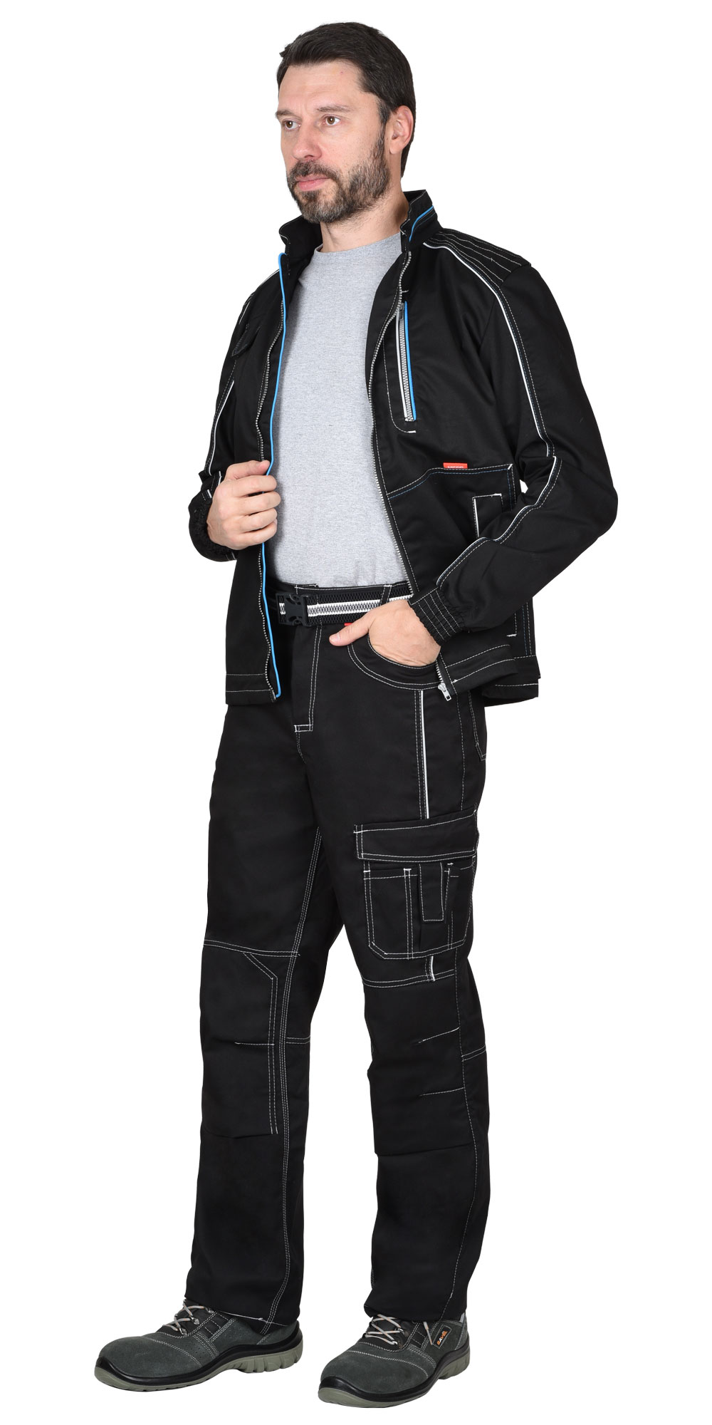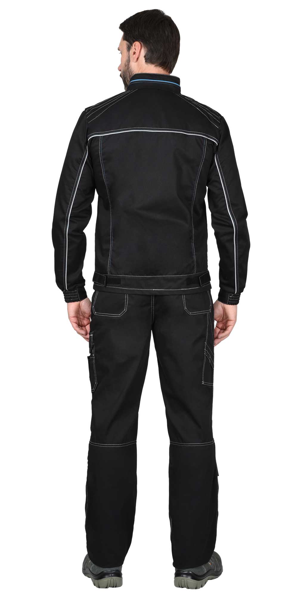 арт.119024 Куртка "СИРИУС-АЛЕКС" летняя мужская черная с голубой отделкой