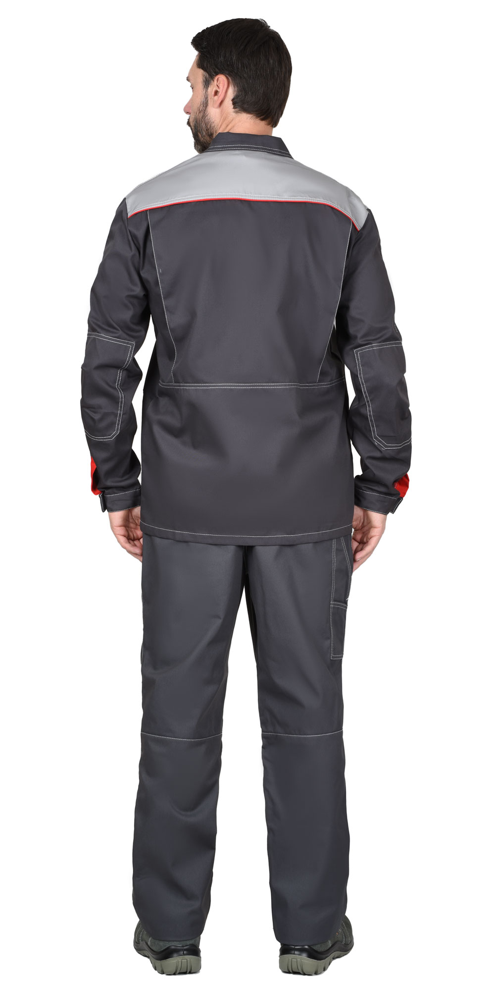 Куртка удлиненная, с центральной потайной застежкой на однозамковую тесьму-молния и декоративными патами из ткани отделки по борту, застегивающимися на потайную ленту контакт; с внутренней планкой; с отложным воротником пиджачного типа; с верхними накладными карманами с клапаном и хлястиком, застегивающимися на потайную ленту контакт; с нижними накладными карманами с клапанами, застегивающимися на потайную ленту контакт, Спинка со складками для свободы движения в средней части.