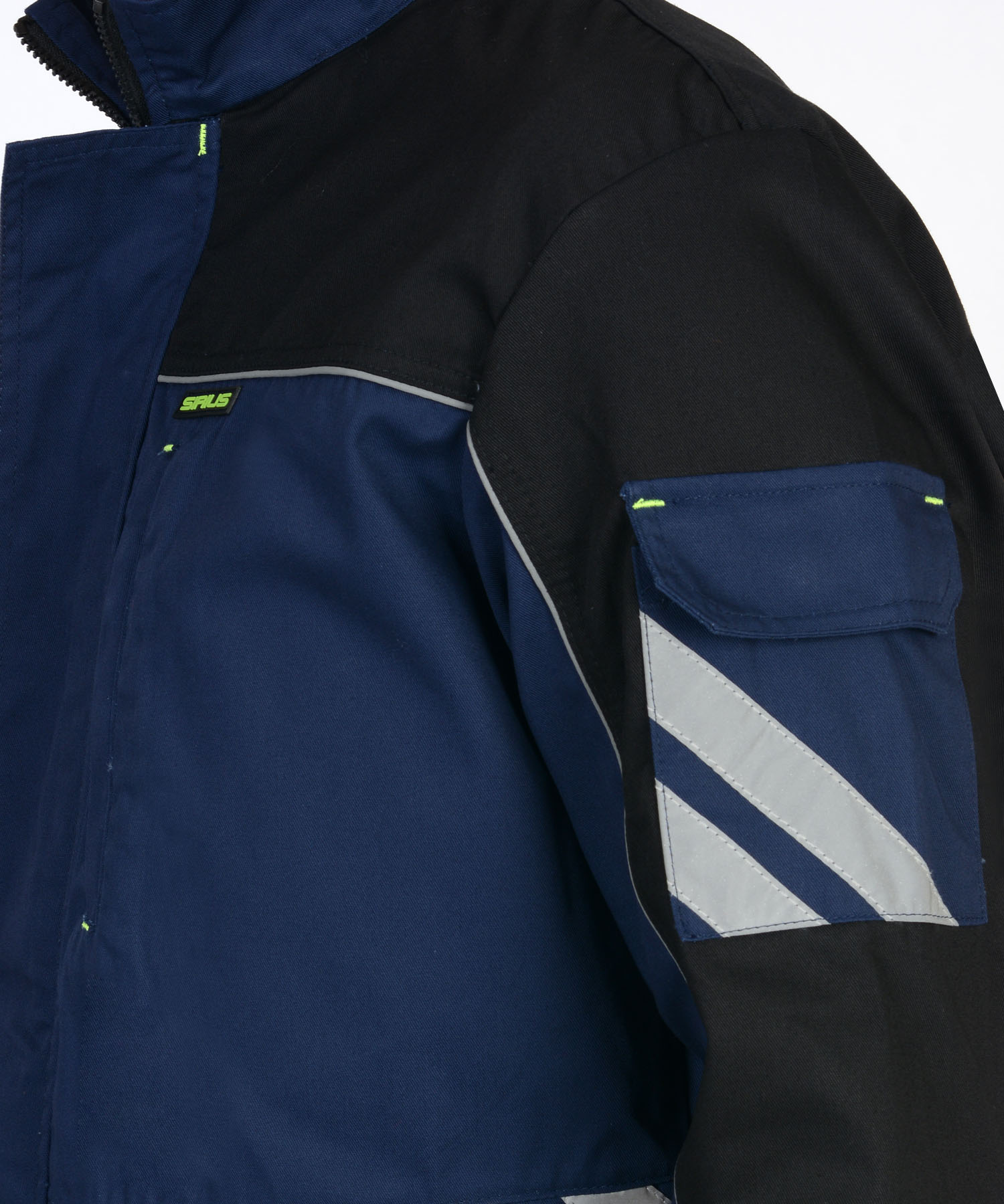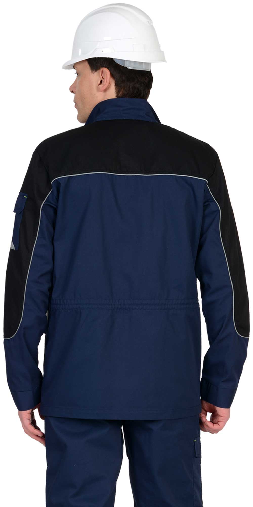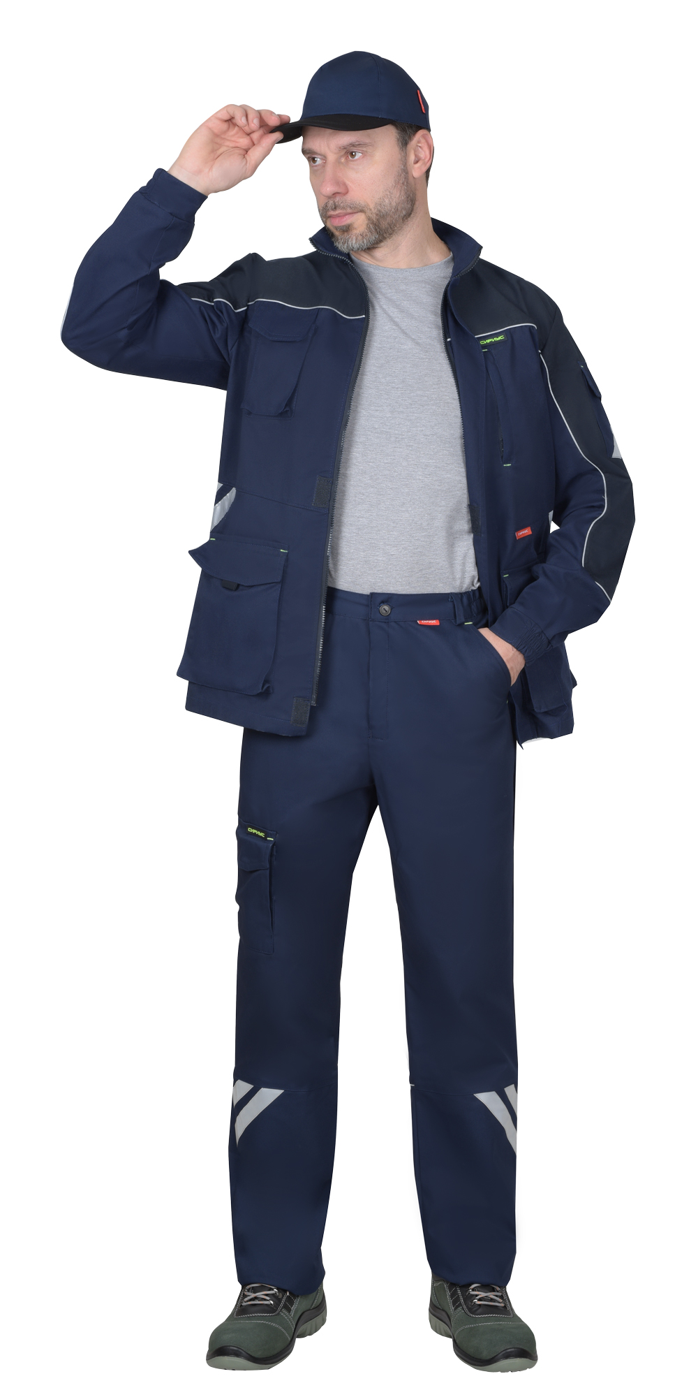 Куртка прямого силуэта, с центральной застежкой на молнию, накрытую ветрозащитным клапаном, с воротником стойка, с различными многофункциональными карманами, с элементами из СВ канта и СОП, обеспечивающие безопасность работы в условиях пониженной видимости. ГОСТ 27575-87