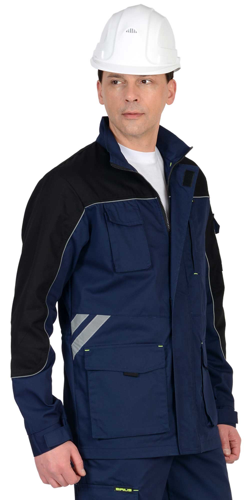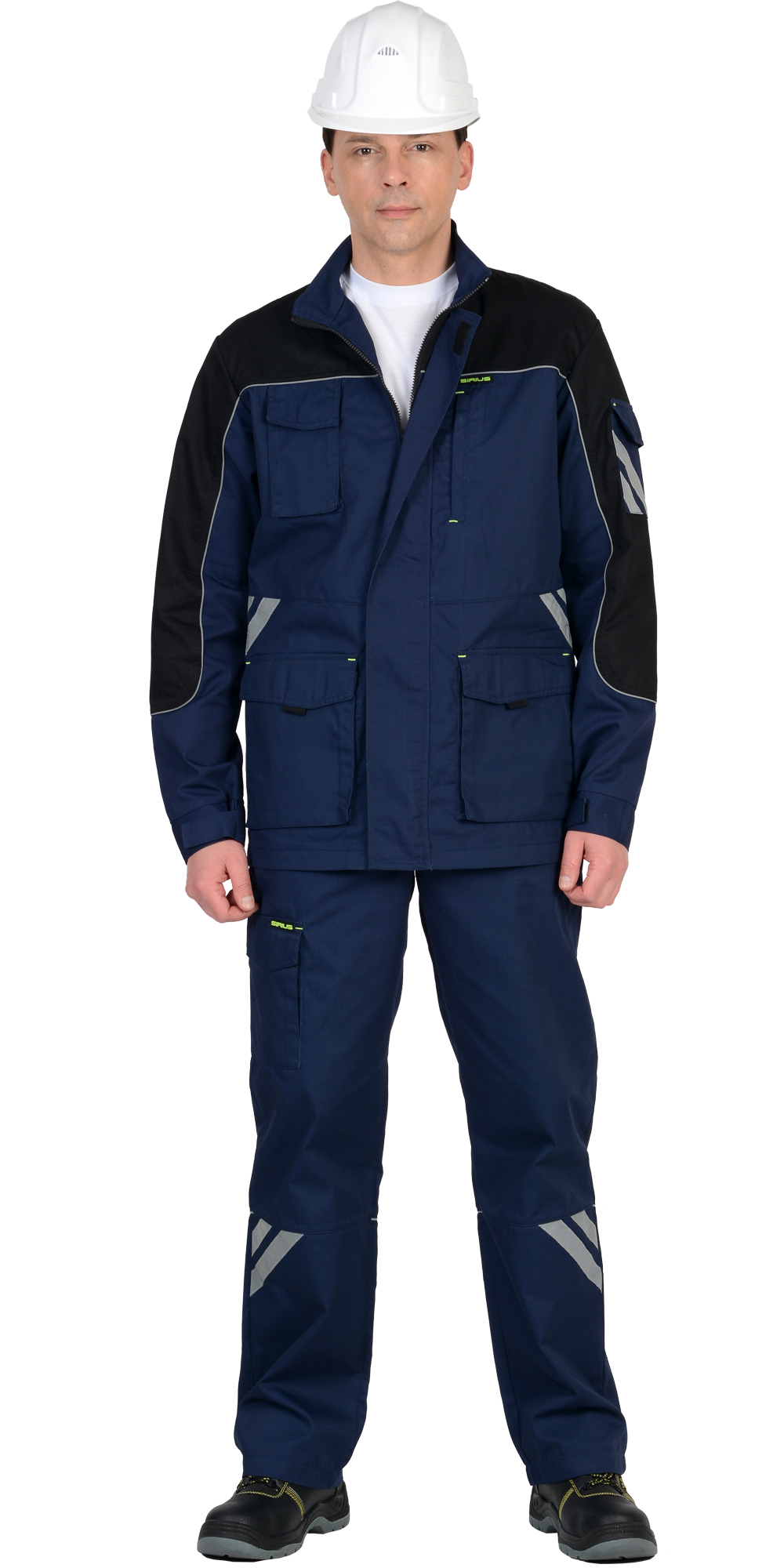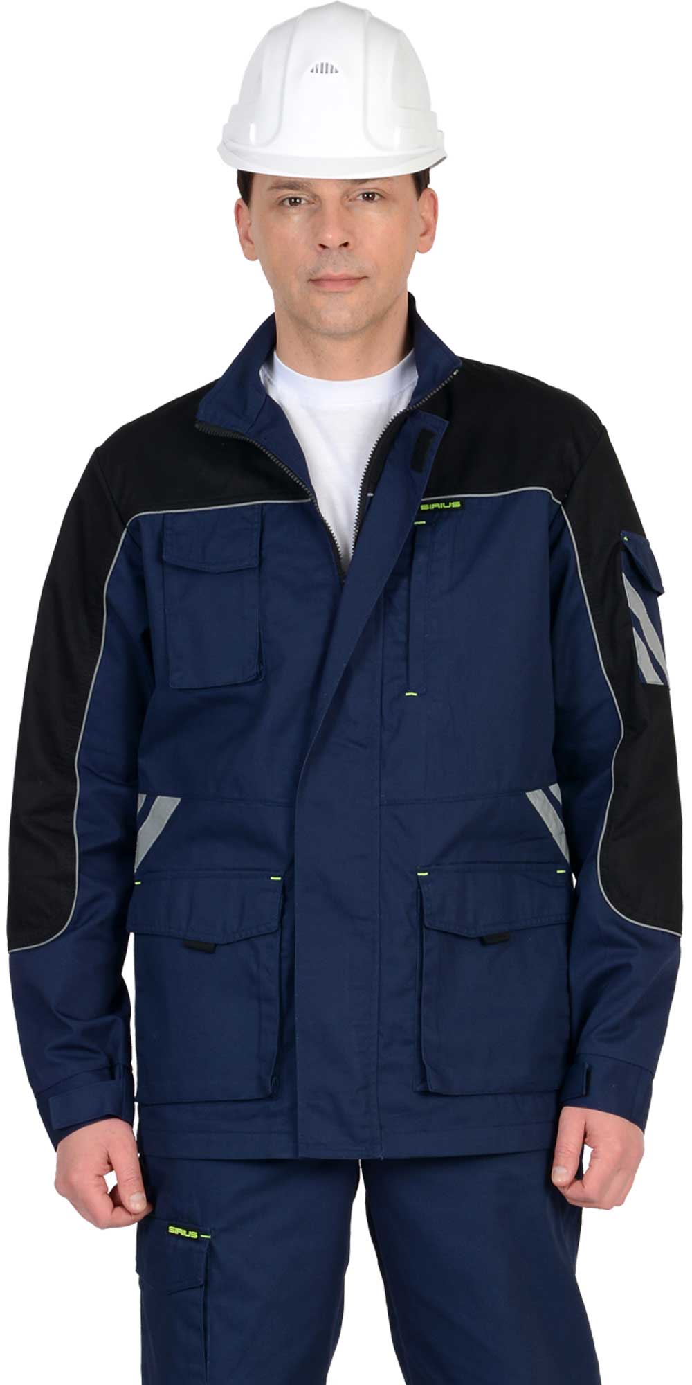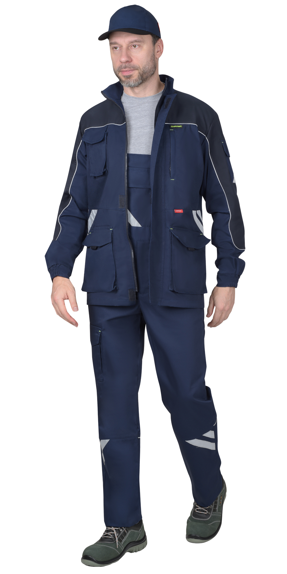 Куртка прямого силуэта, с центральной застежкой на молнию, накрытую ветрозащитным клапаном, с воротником стойка, с различными многофункциональными карманами, с элементами из СВ канта и СОП, обеспечивающие безопасность работы в условиях пониженной видимости. ГОСТ 27575-87