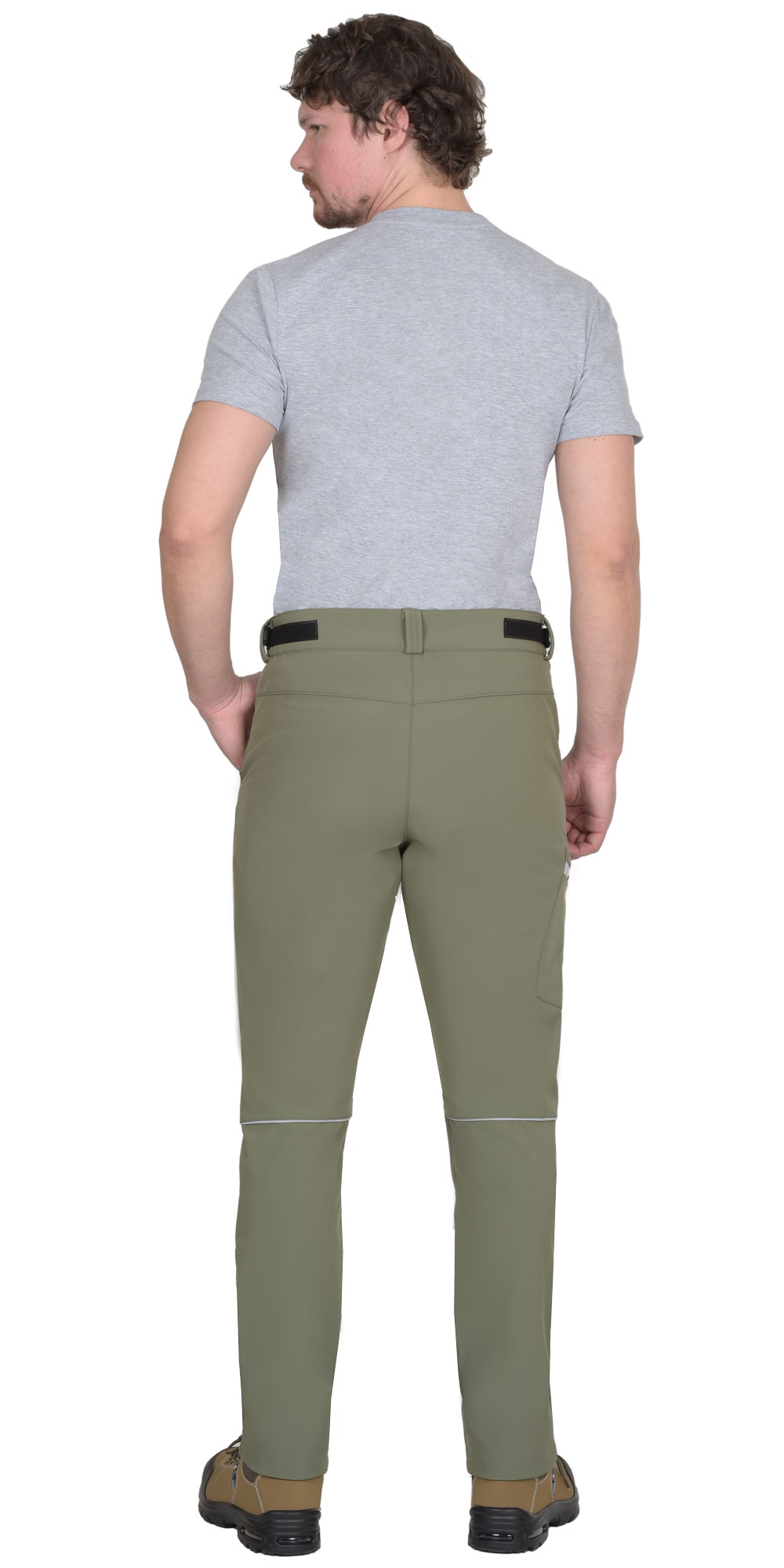 Брюки прямого кроя с застежкой гульфика на молнию, с отрезным поясом, с внутренними боковыми карманами и накладным карманом на правом боковом шве. В брюках предусмотрены светоотражающие элементы на накладном кармане и кант на задних половинках для обозначения сигнальной видимости в тёмное время суток.