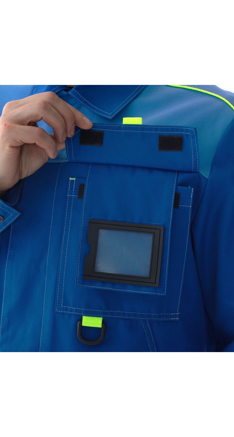 Вшитое окно под бейдж, которое можно убрать в карман. Пластиковое полукольцо для крепления ретрактора или карабина. Воротник – отложной. По низу втачных рукавов - манжеты c застёжкой на петли и пуговицы. Контрастные канты.