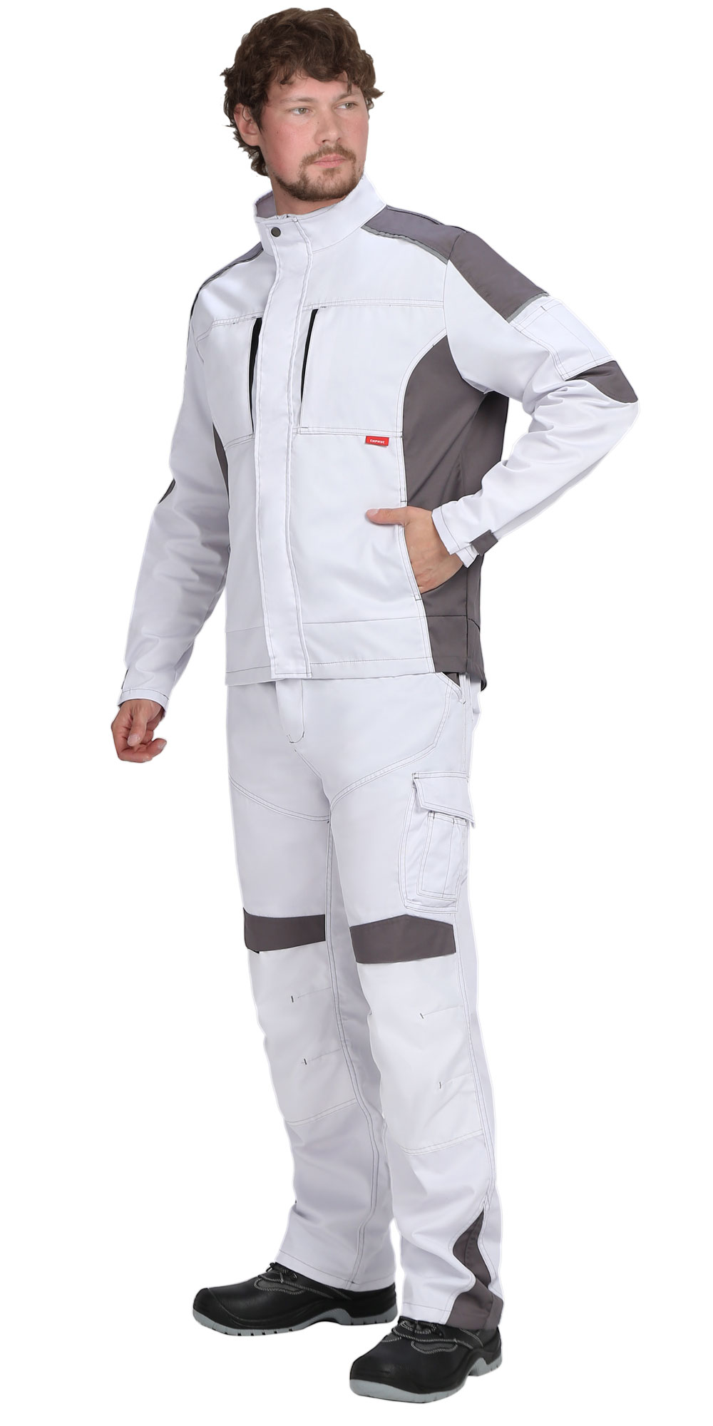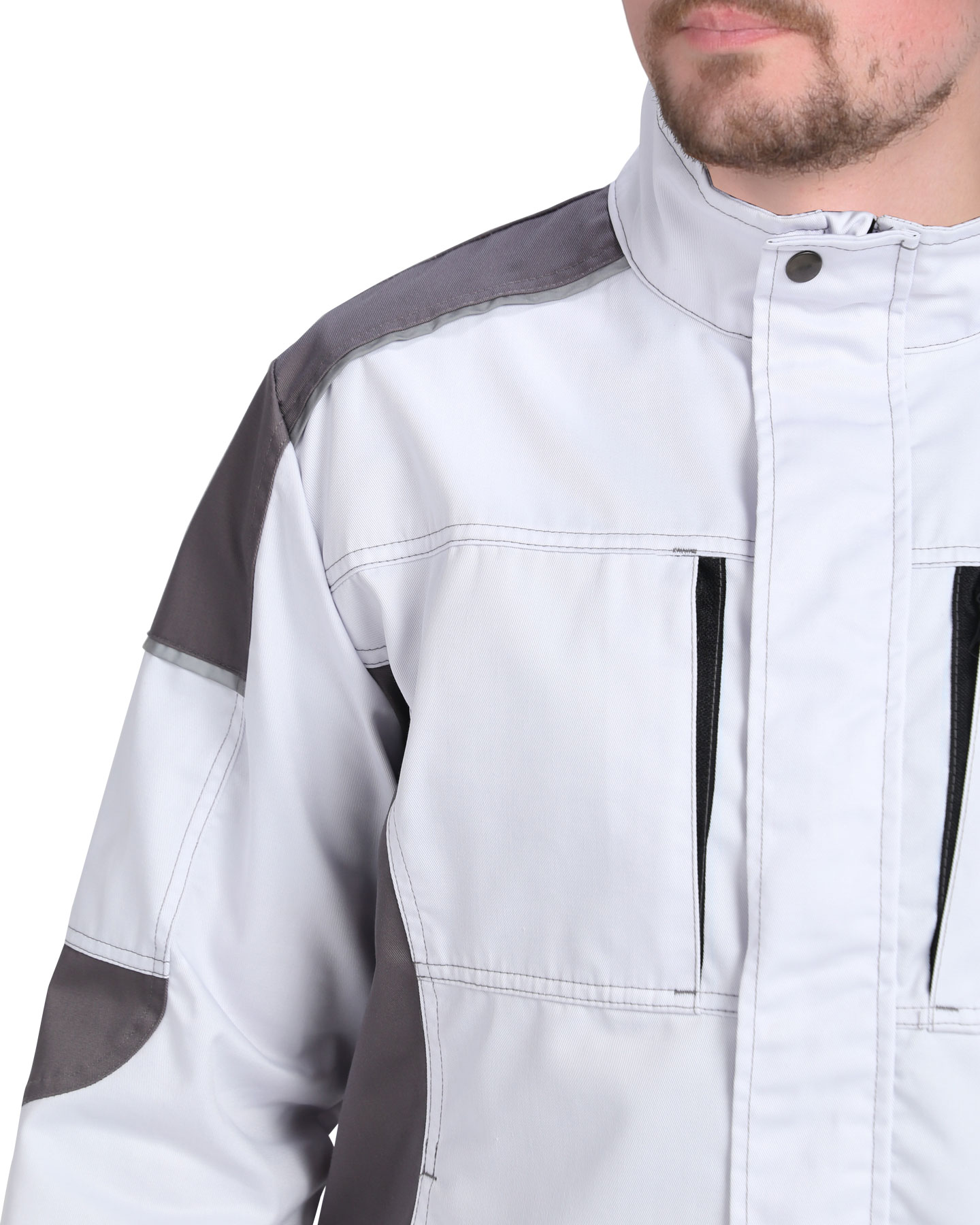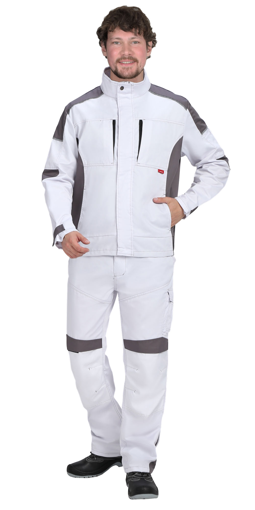 Куртка двухцветная, прямого силуэта, укороченная, с воротником стойка, с центральной застёжкой на молнию от края воротника до низа, накрытую ветрозащитной планкой и внутренней короткой планкой по правому борту, с нагрудными карманами с молнией, с нижними карманами в шве. Рукава втачные, объём по низу рукава регулируется хлястиком с текстильной застёжкой «липучка». В куртке предусмотрен СВ кант.