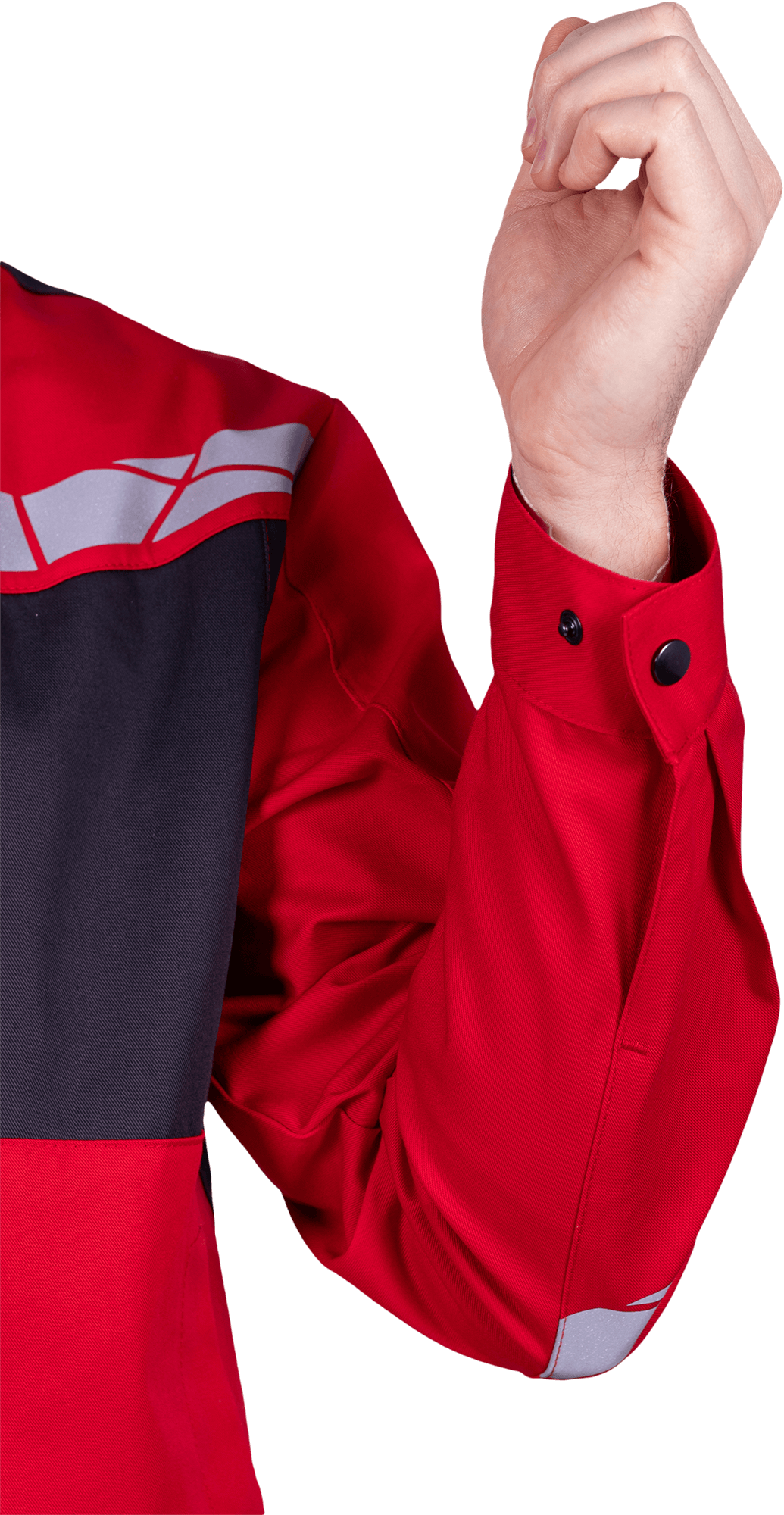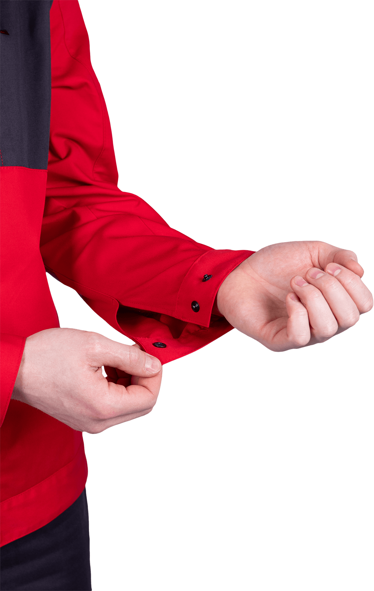 • рукава с локтевыми швами, с манжетами с застёжкой на кнопку с возможностью регулирования объема