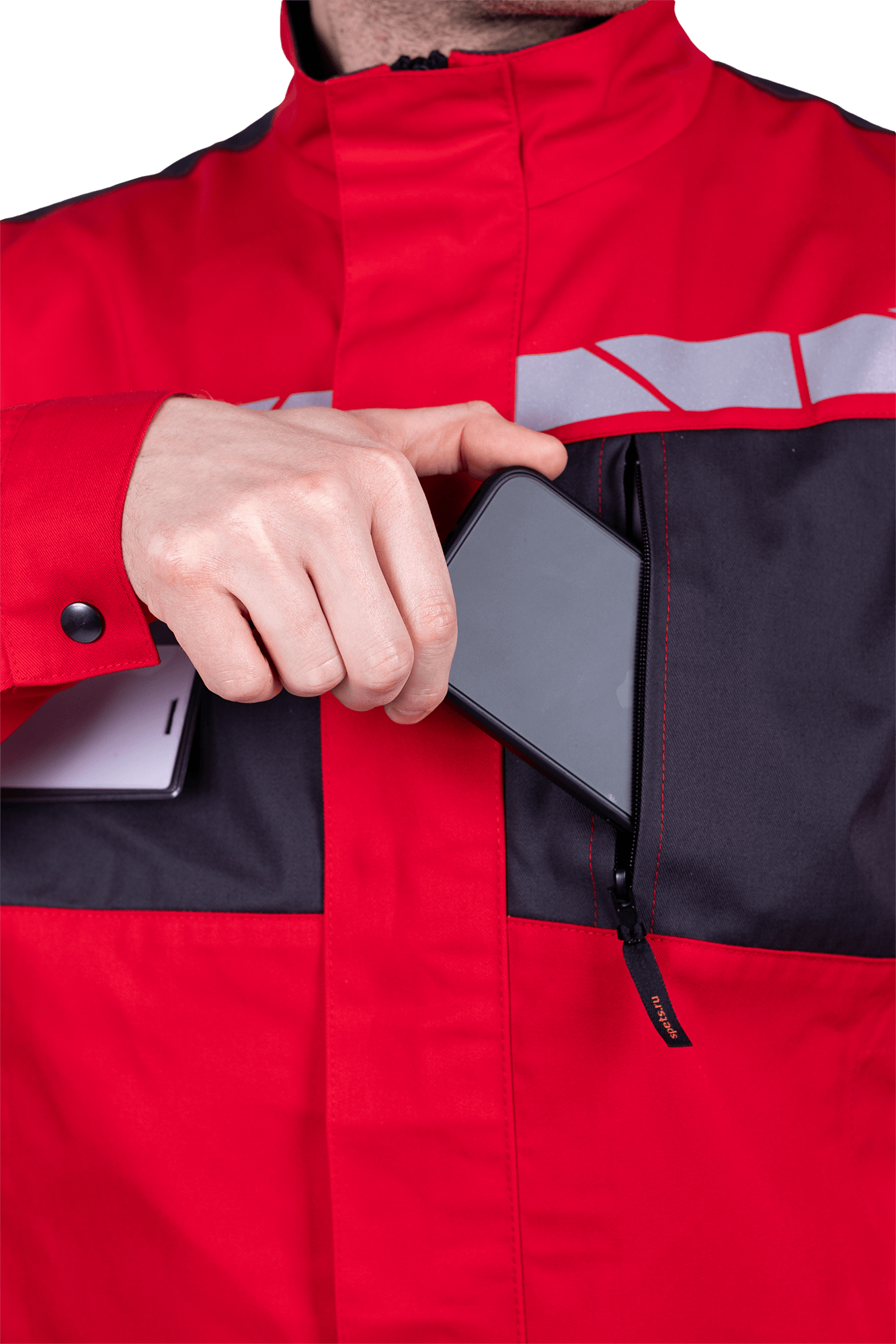 • левый нагрудный карман на молнии с вертикальным входом
