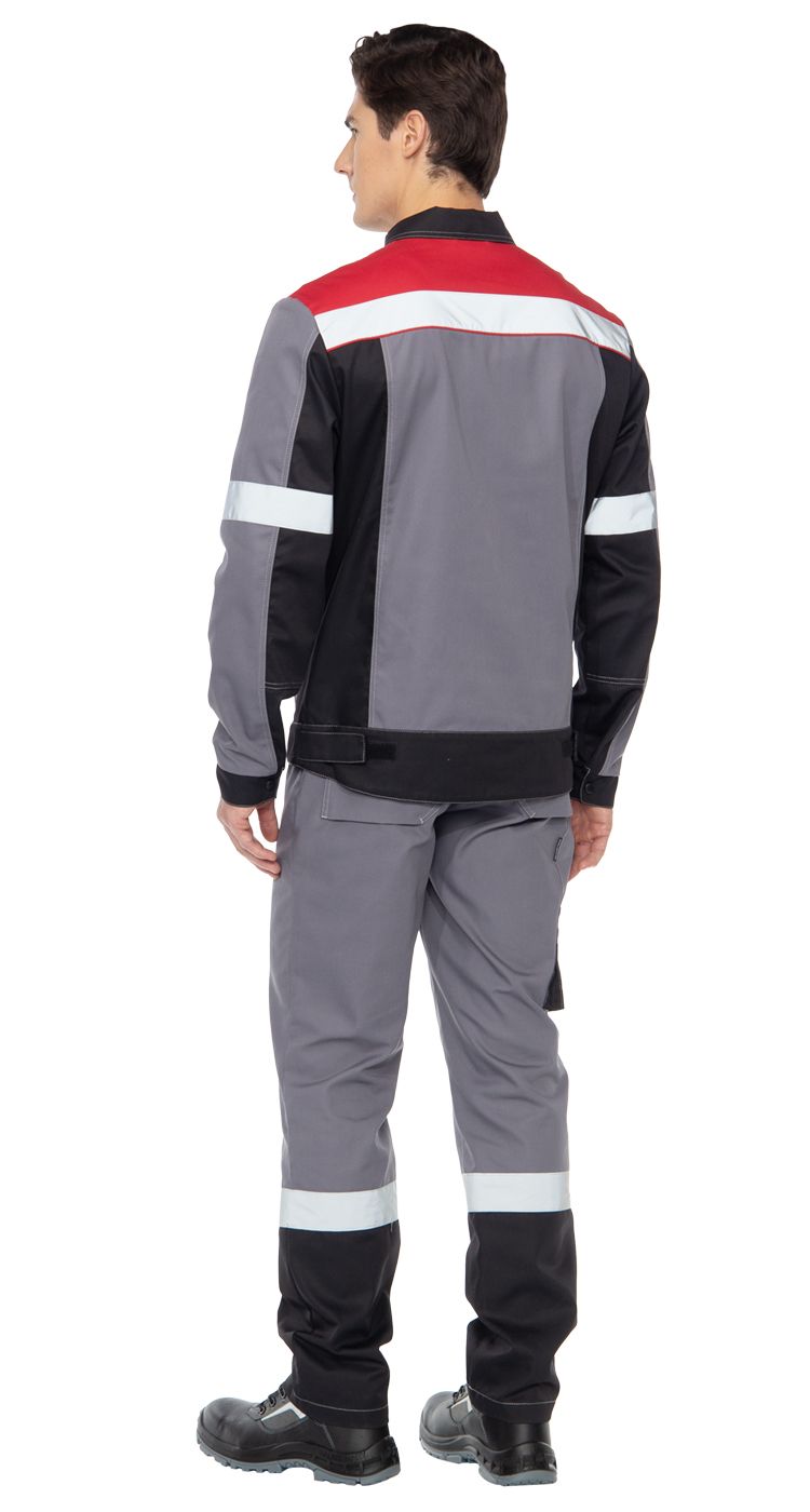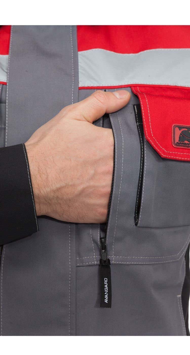 По низу кокеток, на рукавах куртки - широкие световозвращающие полосы для безопасной работы в условиях плохой видимости.