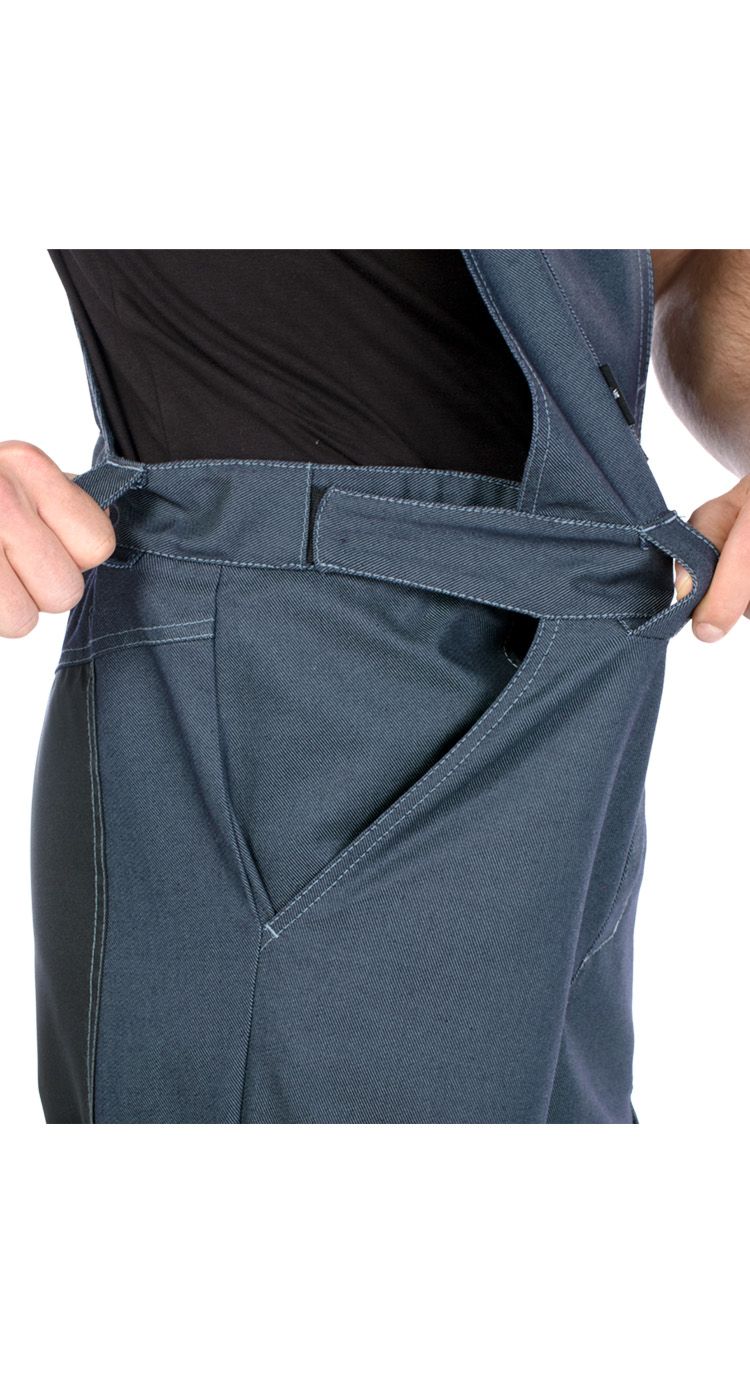 В области колен, сидения, по низу брюк расположены усилительные накладки из ткани стойкой к истиранию.