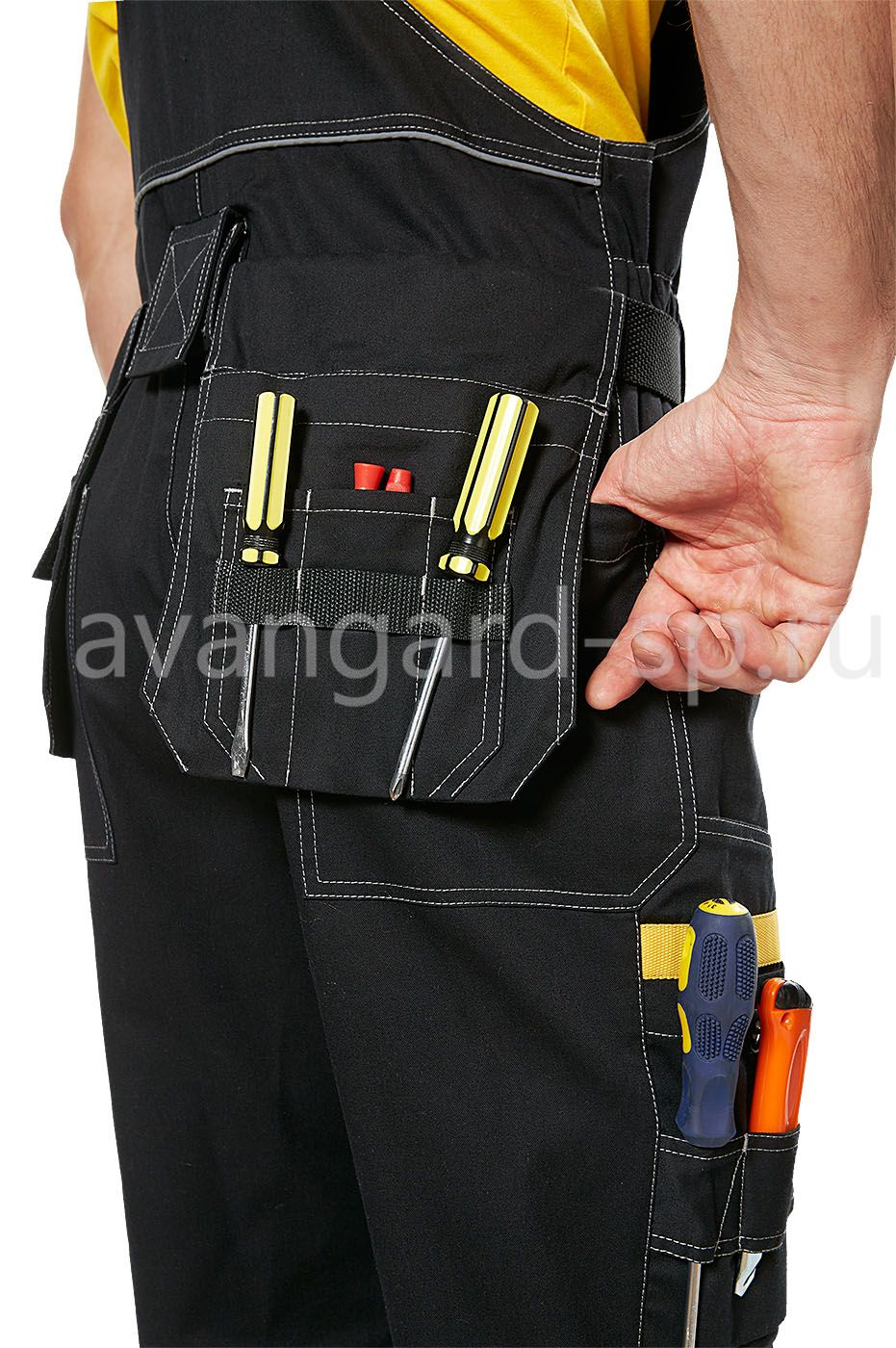 - боковой карман на брюках спереди с отделом для инструментов, задние накладные карманы, карманы с наклонным входом;