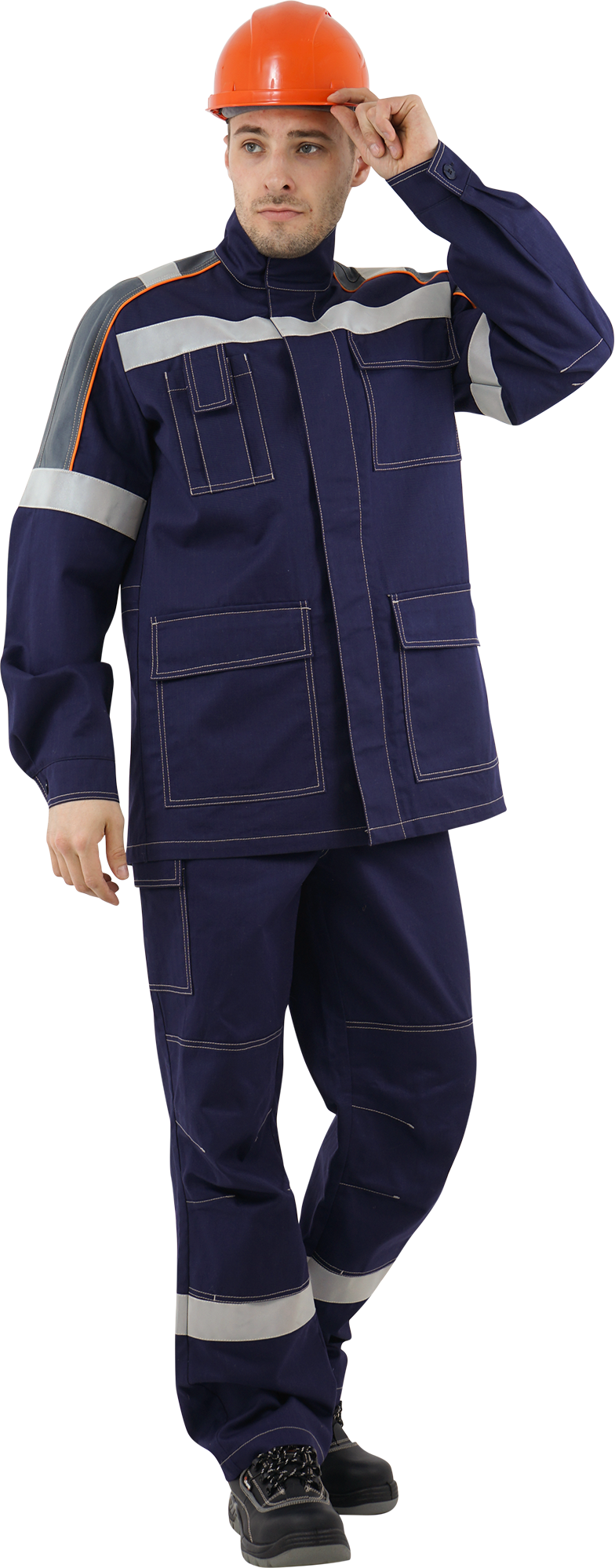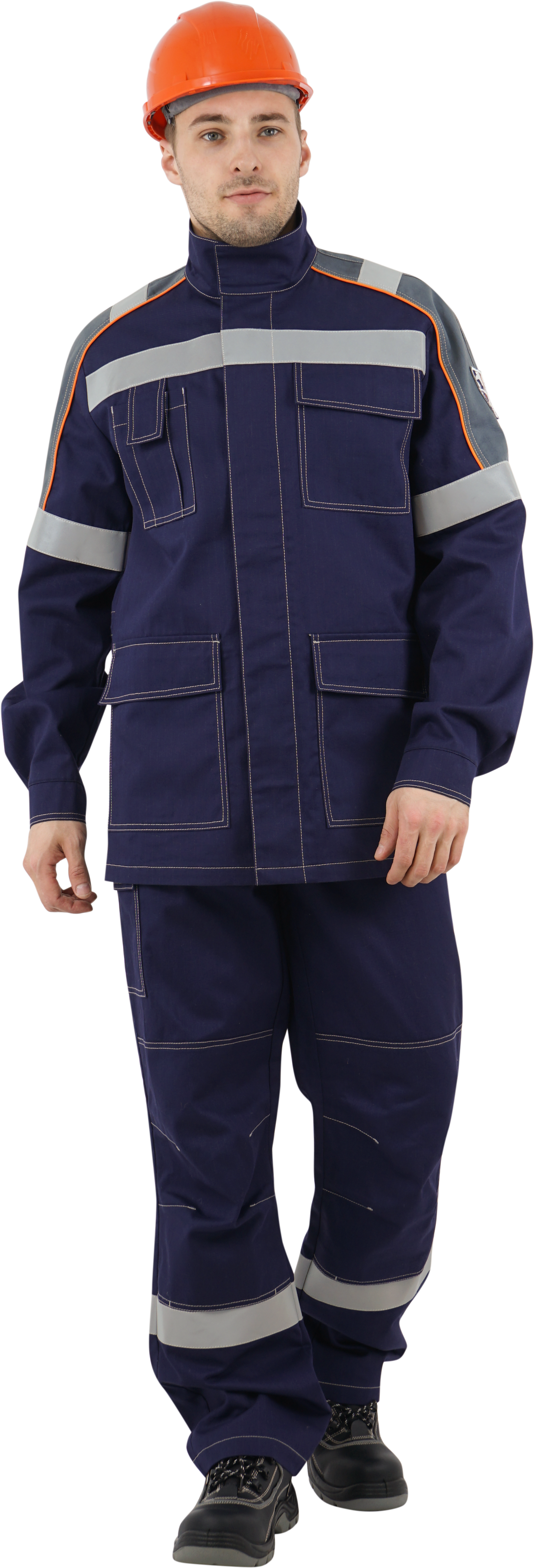 В костюме используется огнестойкая световозвращающая полоса шириной 50 мм. Огнестойкие нитки Nomex.