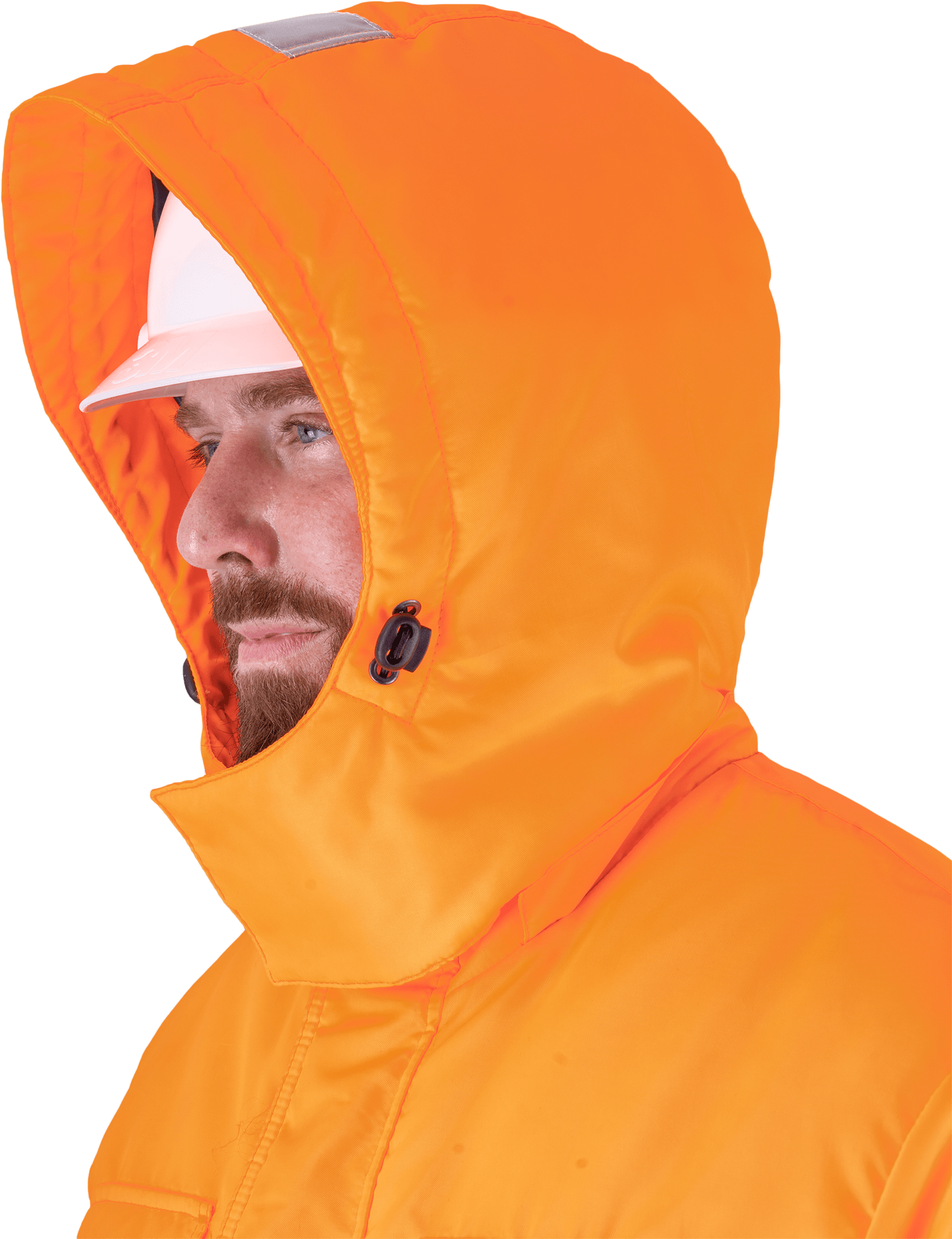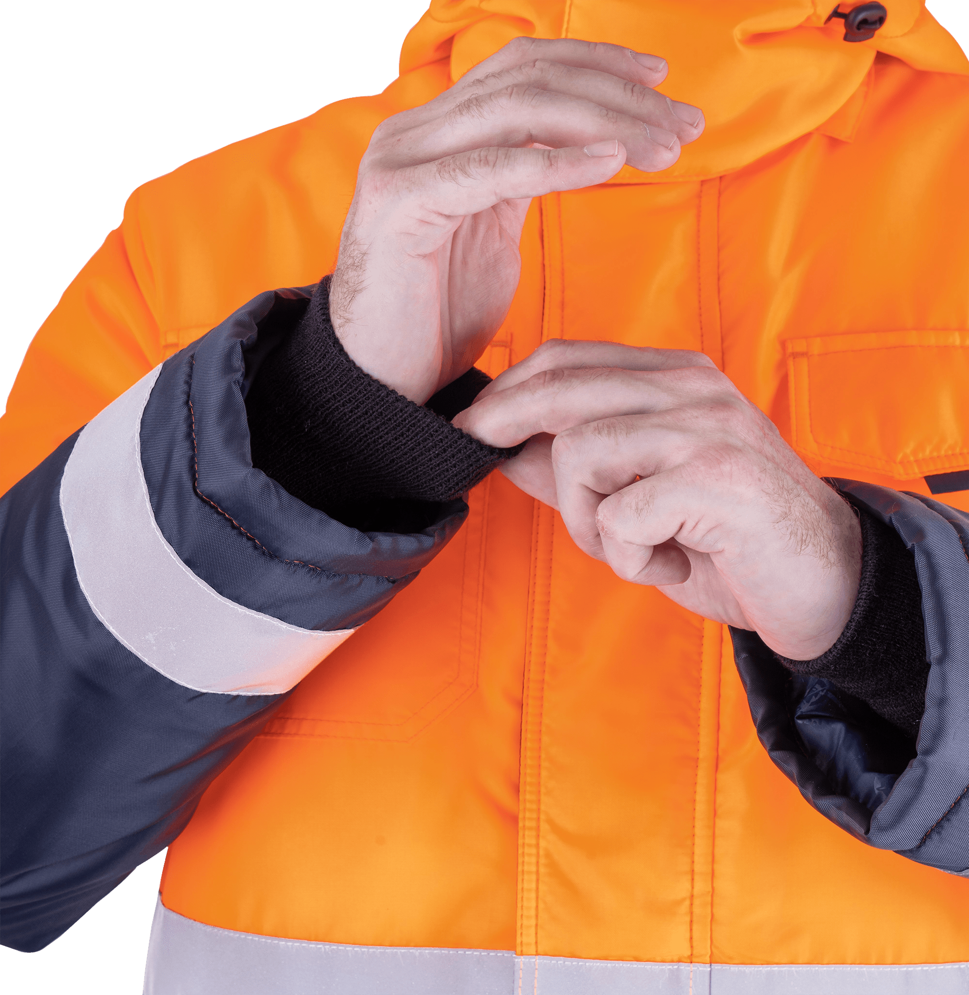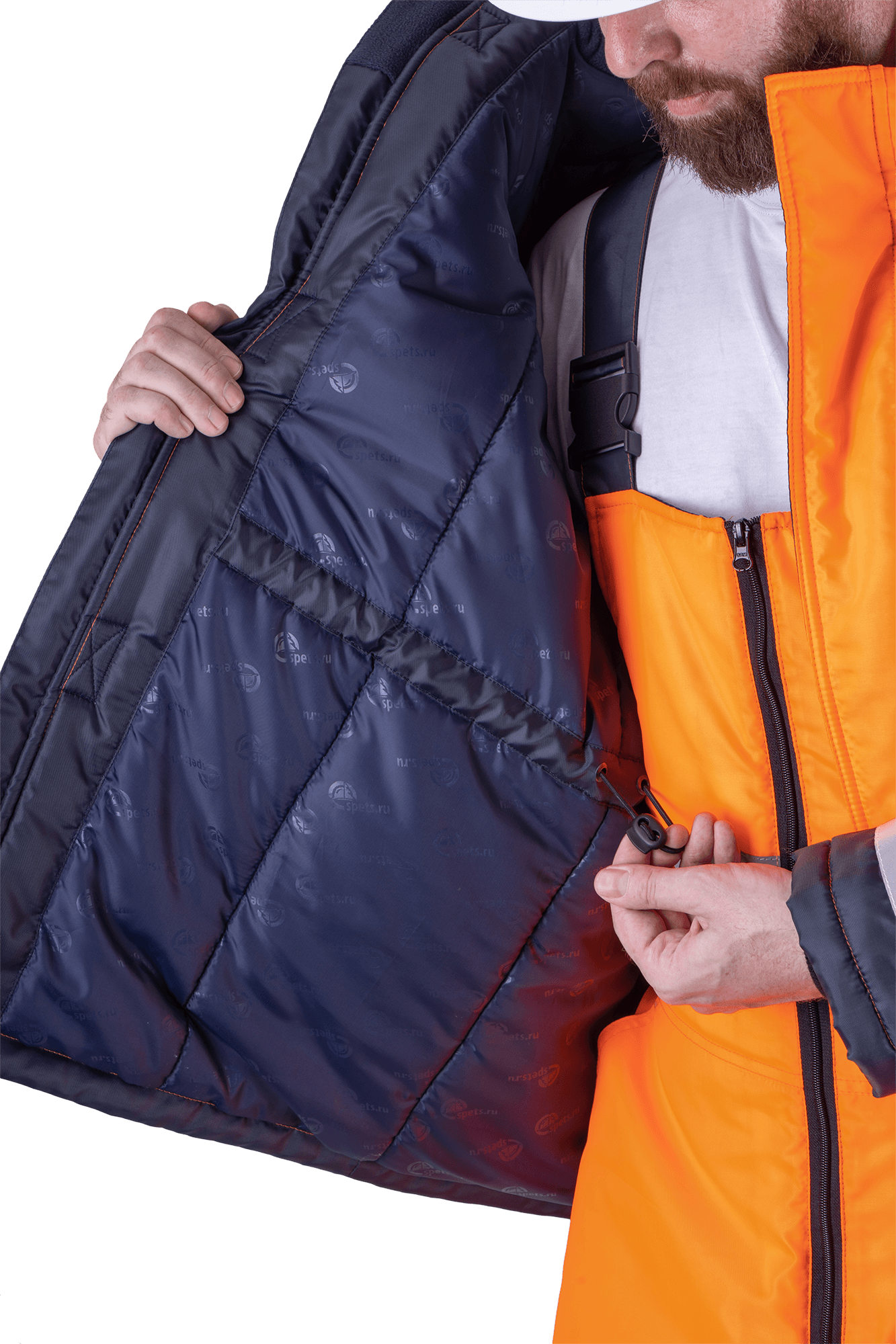 • капюшон утепленный с подбородочной частью, пристегивается на тесьму-молнию, с регулировкой