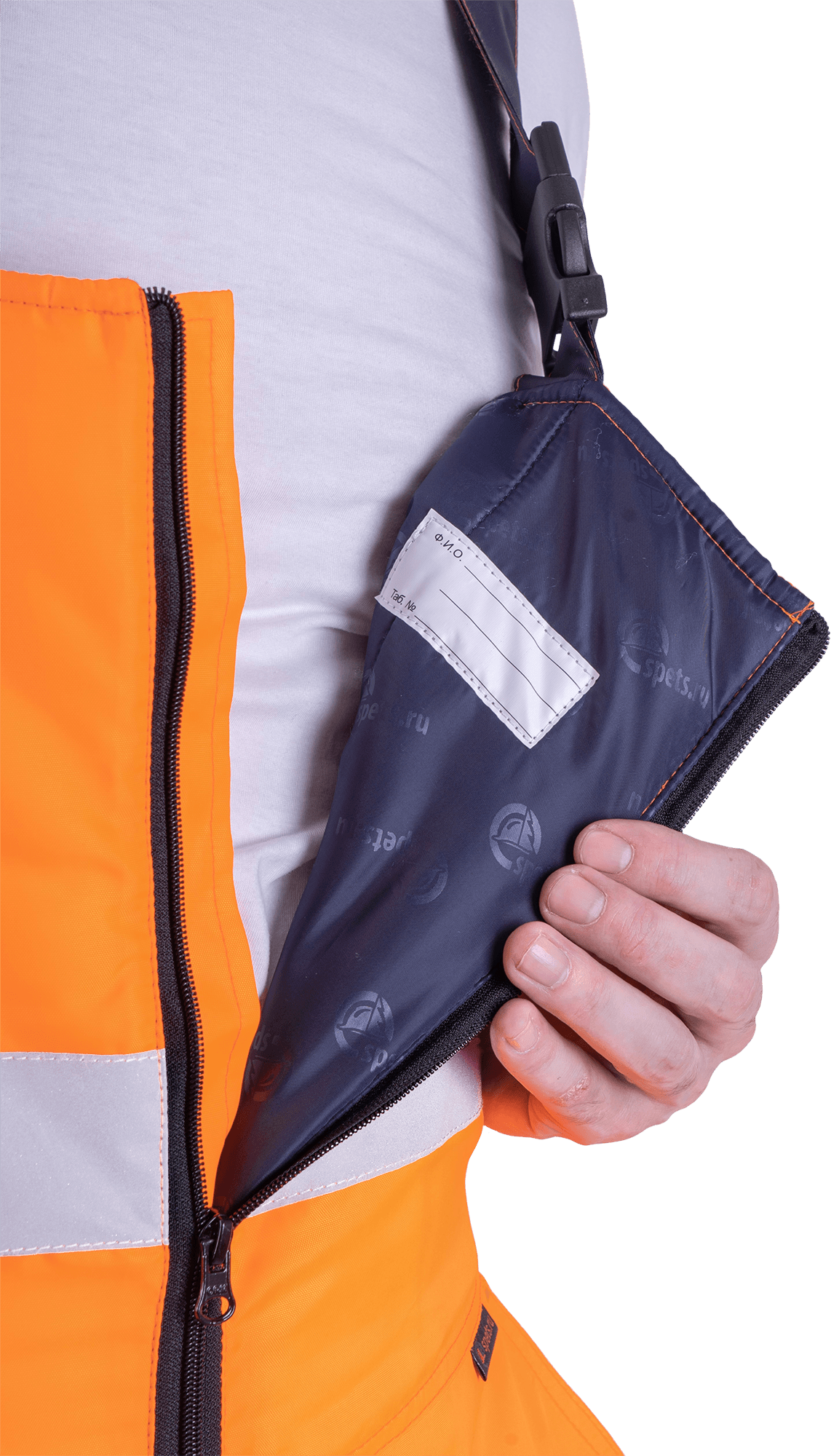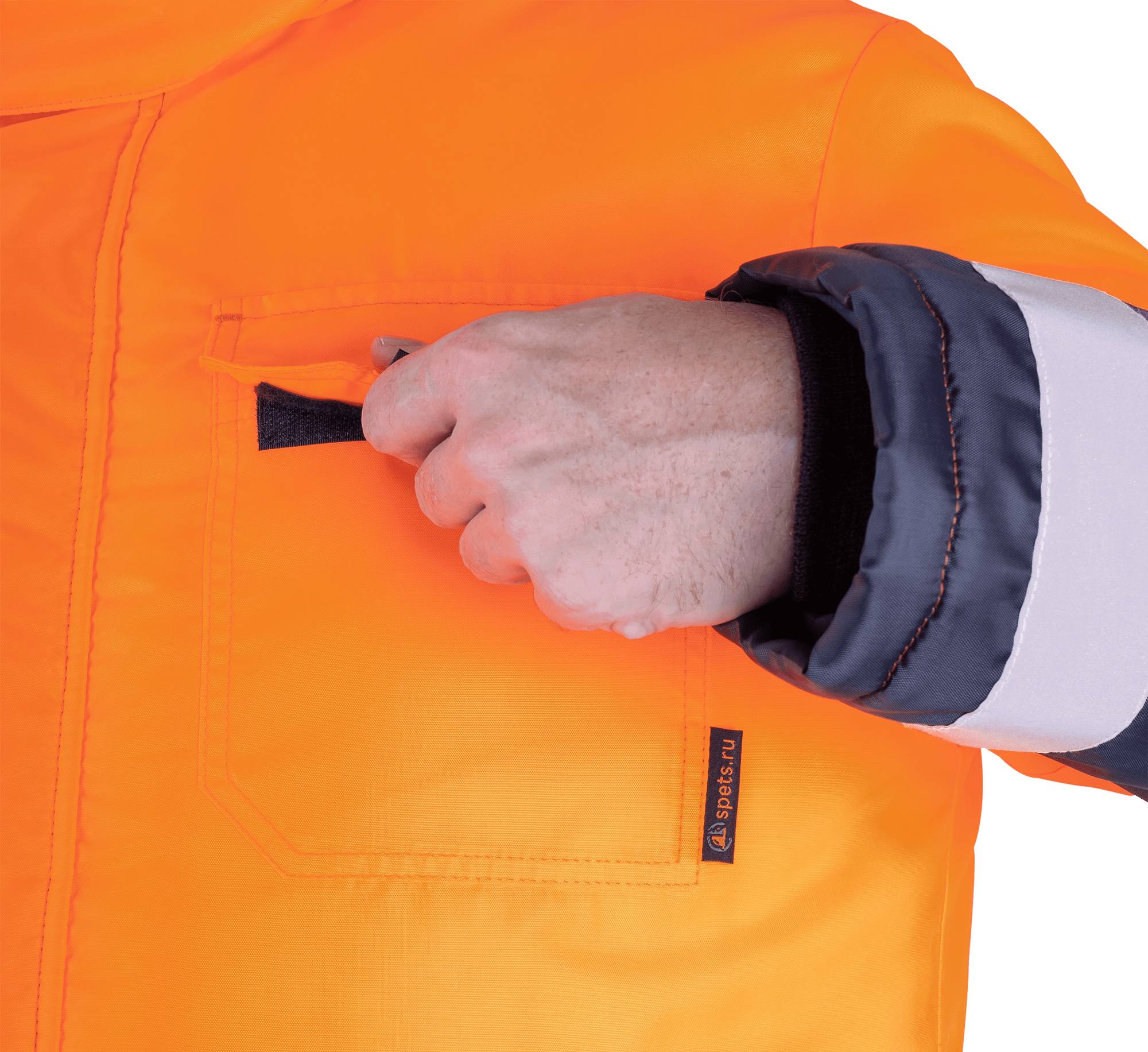 с горизонтальным входом, внутренний карман на левой полочке с застежкой на тесьму-молнию)