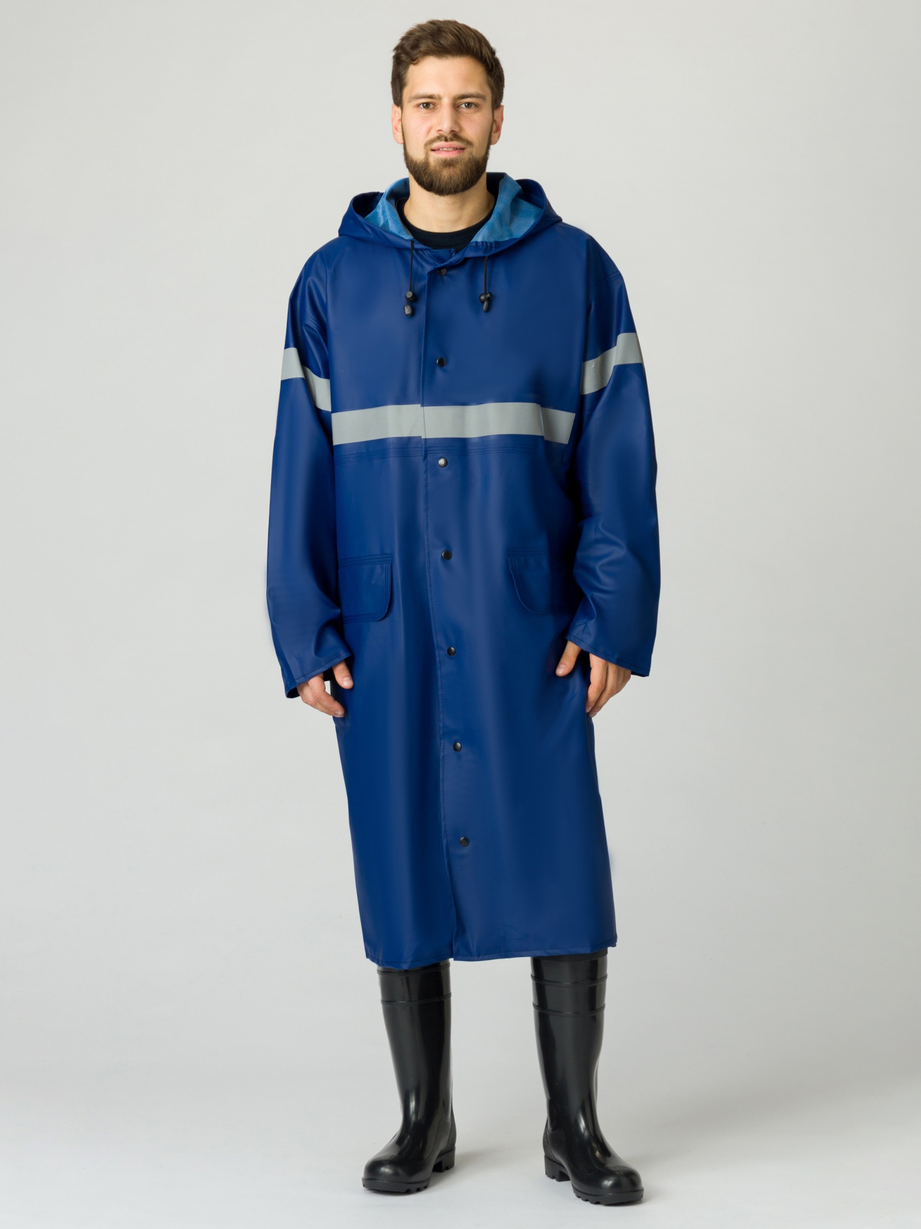 - конструкция плаща, материал, из которого он изготовлен, и сварные швы обеспечивают защиту от воды, ветра, сырой нефти и нефтепродуктов