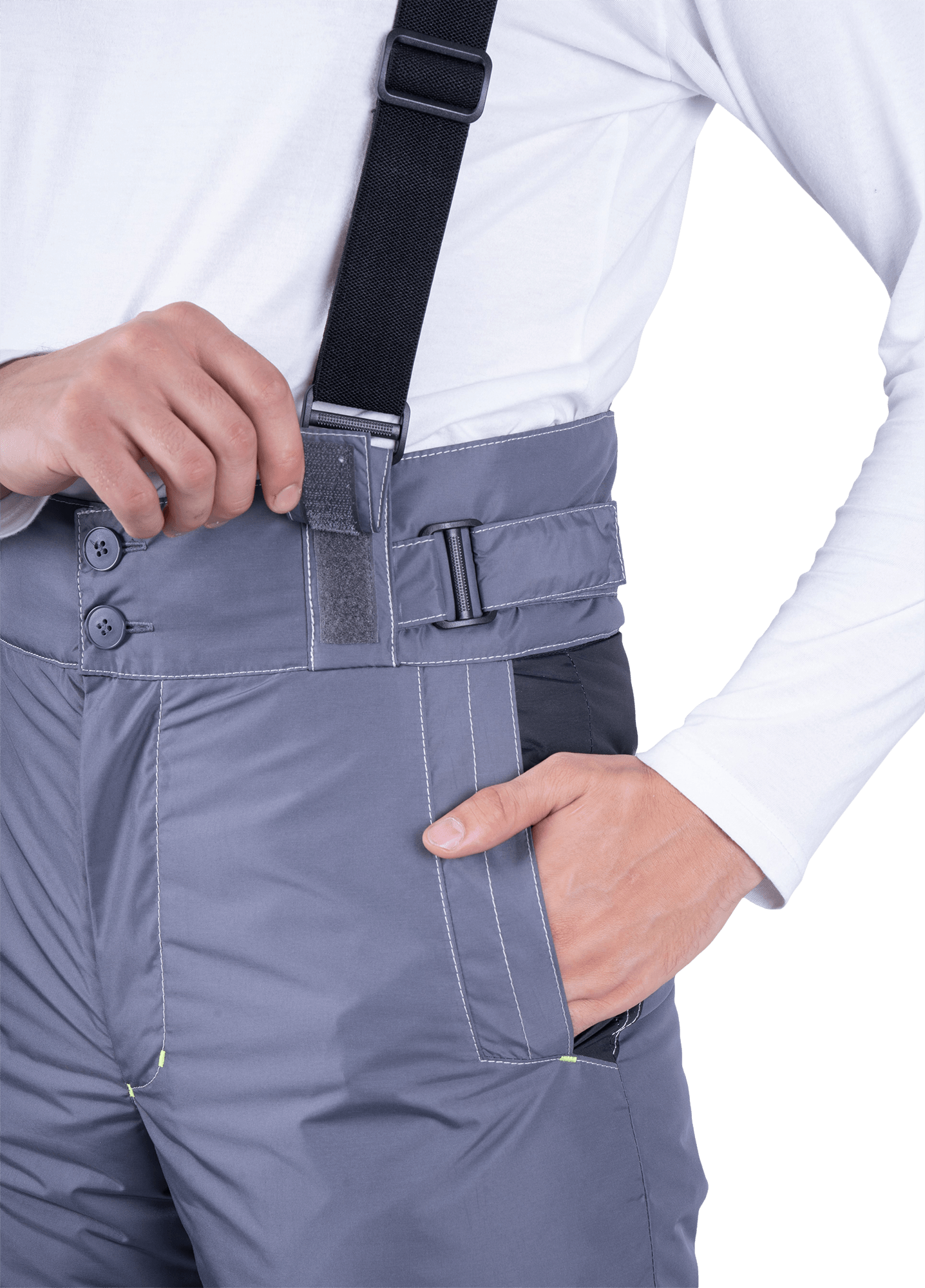 • высокий утеплённый пояс с застёжкой на две кнопки, со шлёвками